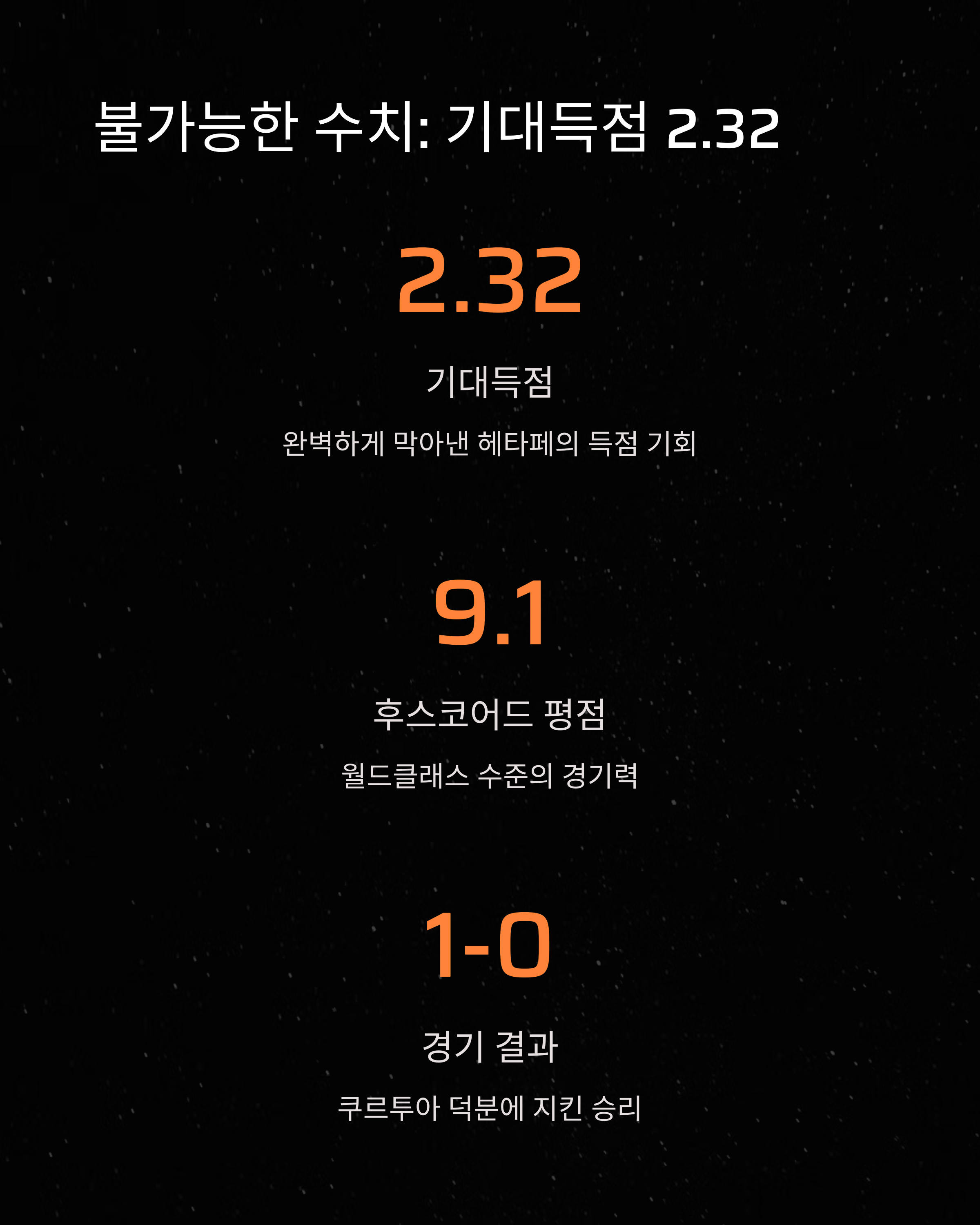 | 기대 실점(xG) 대비 실제 실점 | 2.32 → 0 |