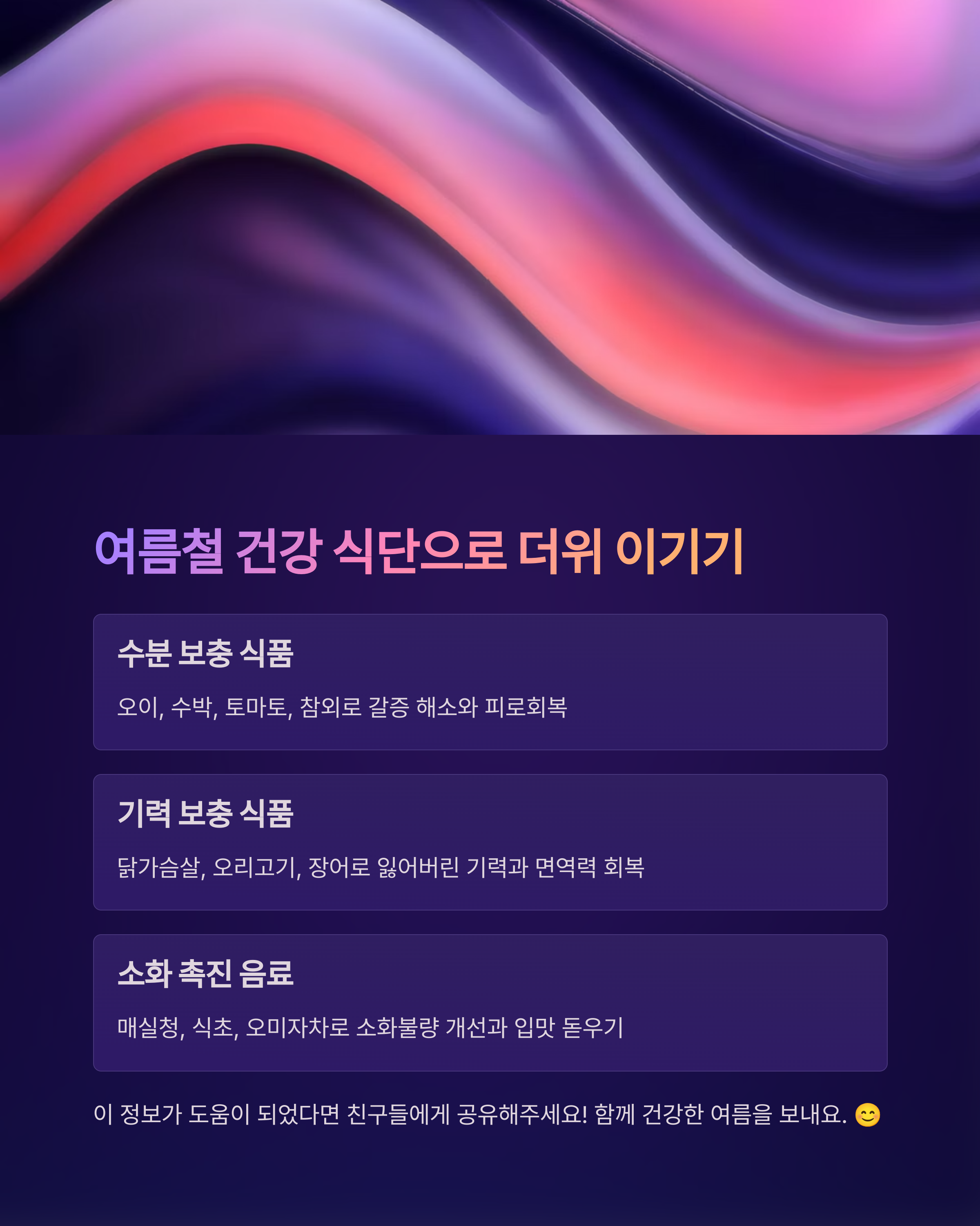 - 충분한 수분 섭취와 가벼운 옷차림 유지