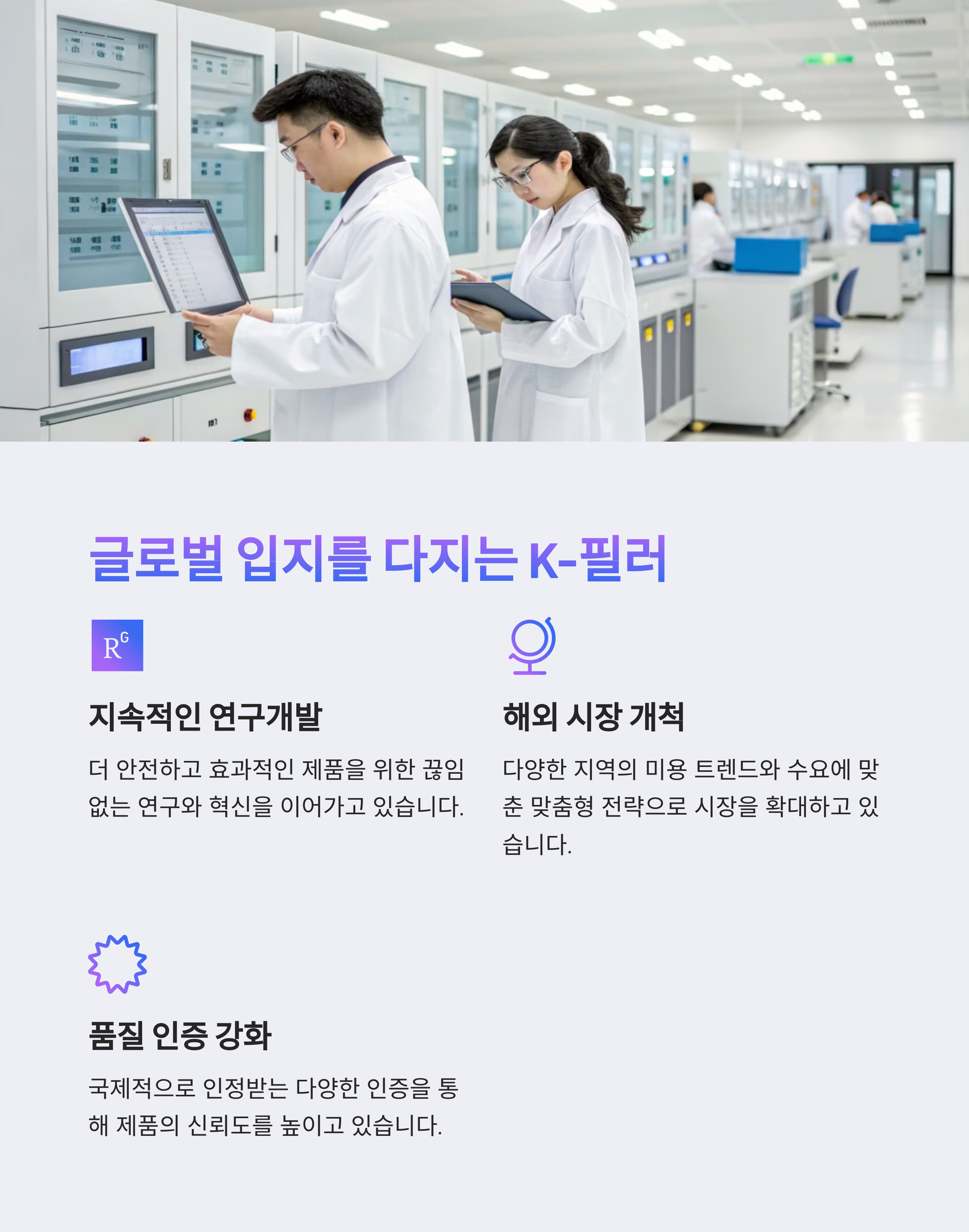 | 우수한 품질 | 최신 기술을 적용한 고순도 히알루론산 필러 개발 |