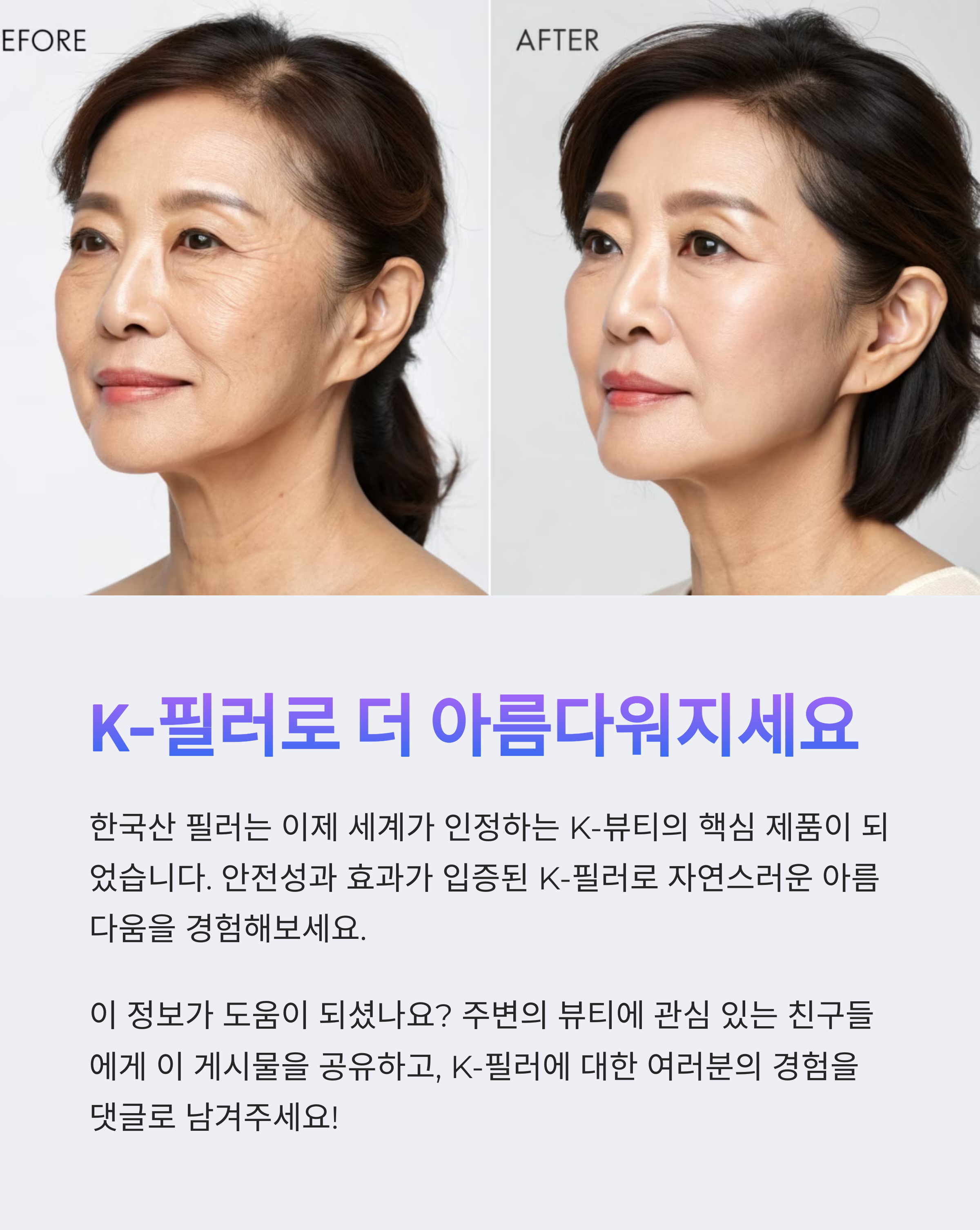 K-뷰티가 세계적으로 인기를 끌면서 한국산 필러도 글로벌 시장에서 강력한 입지를 다지고 있습니다. 고품질과 합리적인 가격을 앞세워 해외 소비자들에게까지 신뢰를 얻고 있으며, 이제는 필러 시장에서도 ‘K-천하’가 현실이 되고 있습니다. 하지만 필러 시술은 단순한 미용 시술이 아닌 만큼, 반드시 안전한 제품과 전문적인 의료진을 선택하는 것이 중요합니다. 앞으로도 한국산 필러의 기술 발전과 글로벌 시장 확장이 기대되며, K-뷰티의 위상이 더욱 높아질 것입니다.