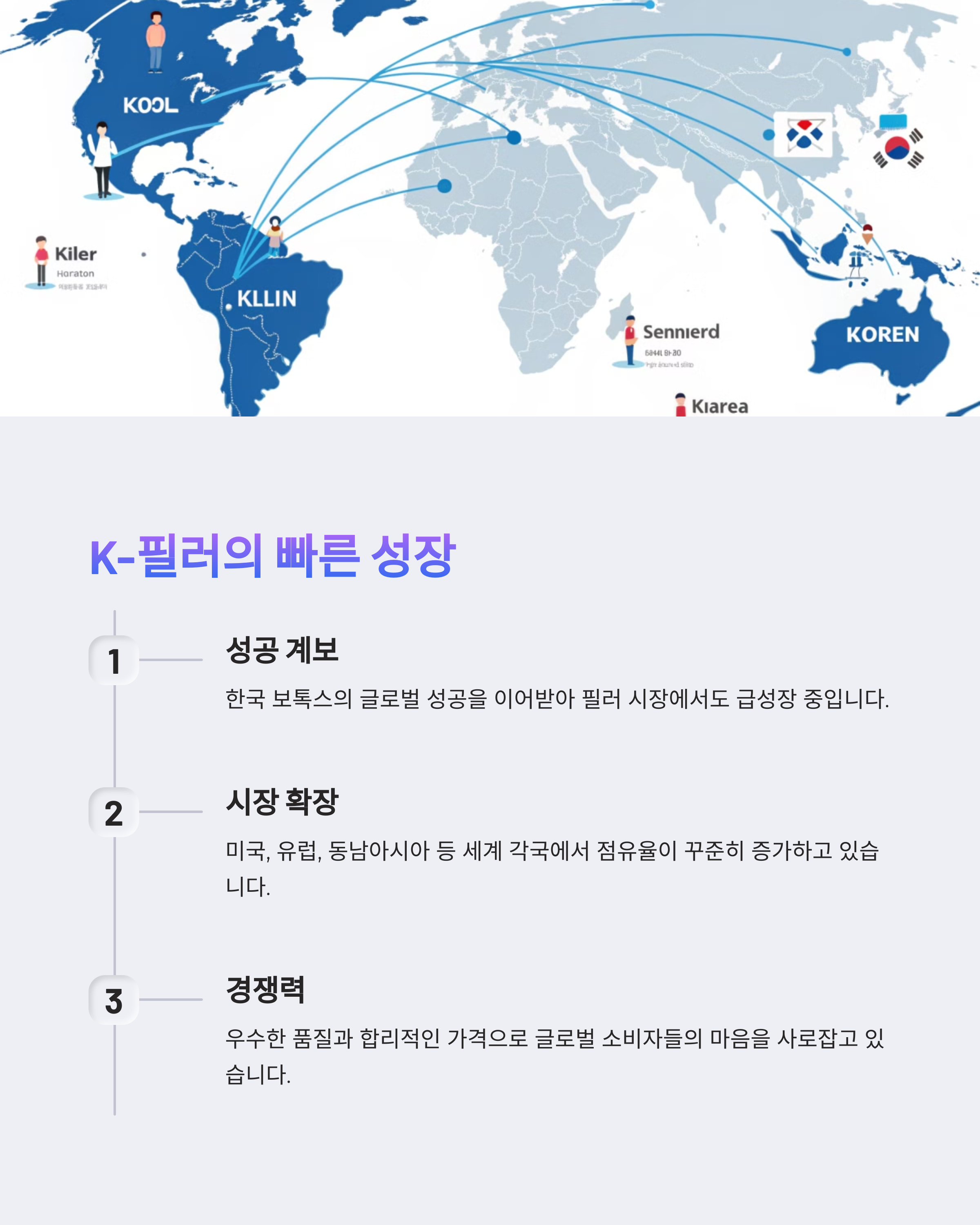 한국 필러 제품은 현재 글로벌 미용 시장에서 빠르게 점유율을 확대하고 있습니다. 기존 유럽과 미국 브랜드가 차지하고 있던 시장에 한국 제품이 진출하면서 경쟁 구도가 변화하고 있습니다.