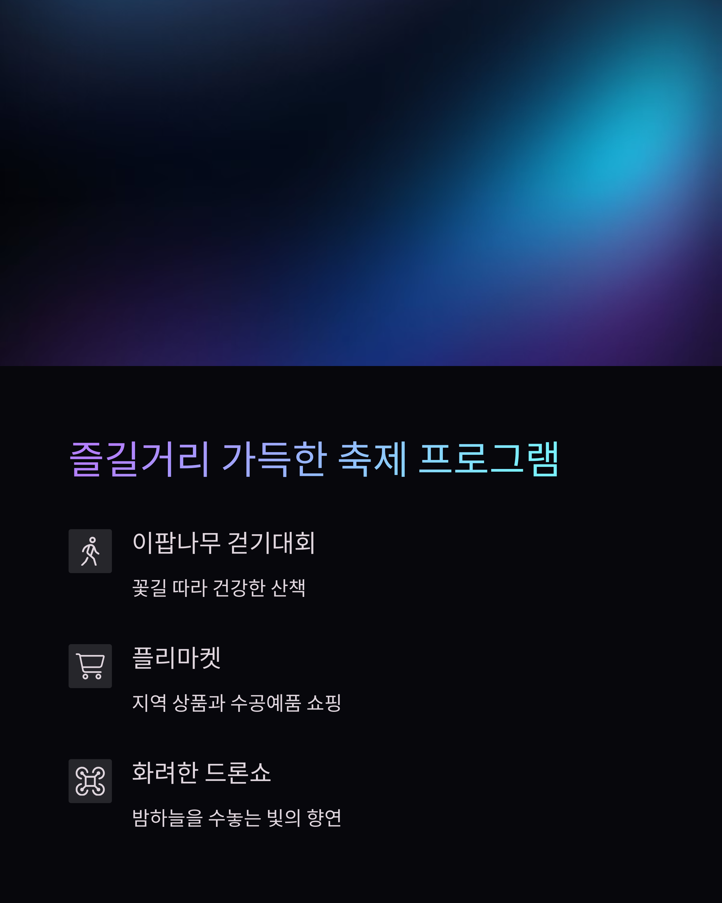 2025년에는 드론 라이트쇼와 야간 조명 퍼포먼스가 새롭게 추가되어 많은 관심을 끌고 있습니다!