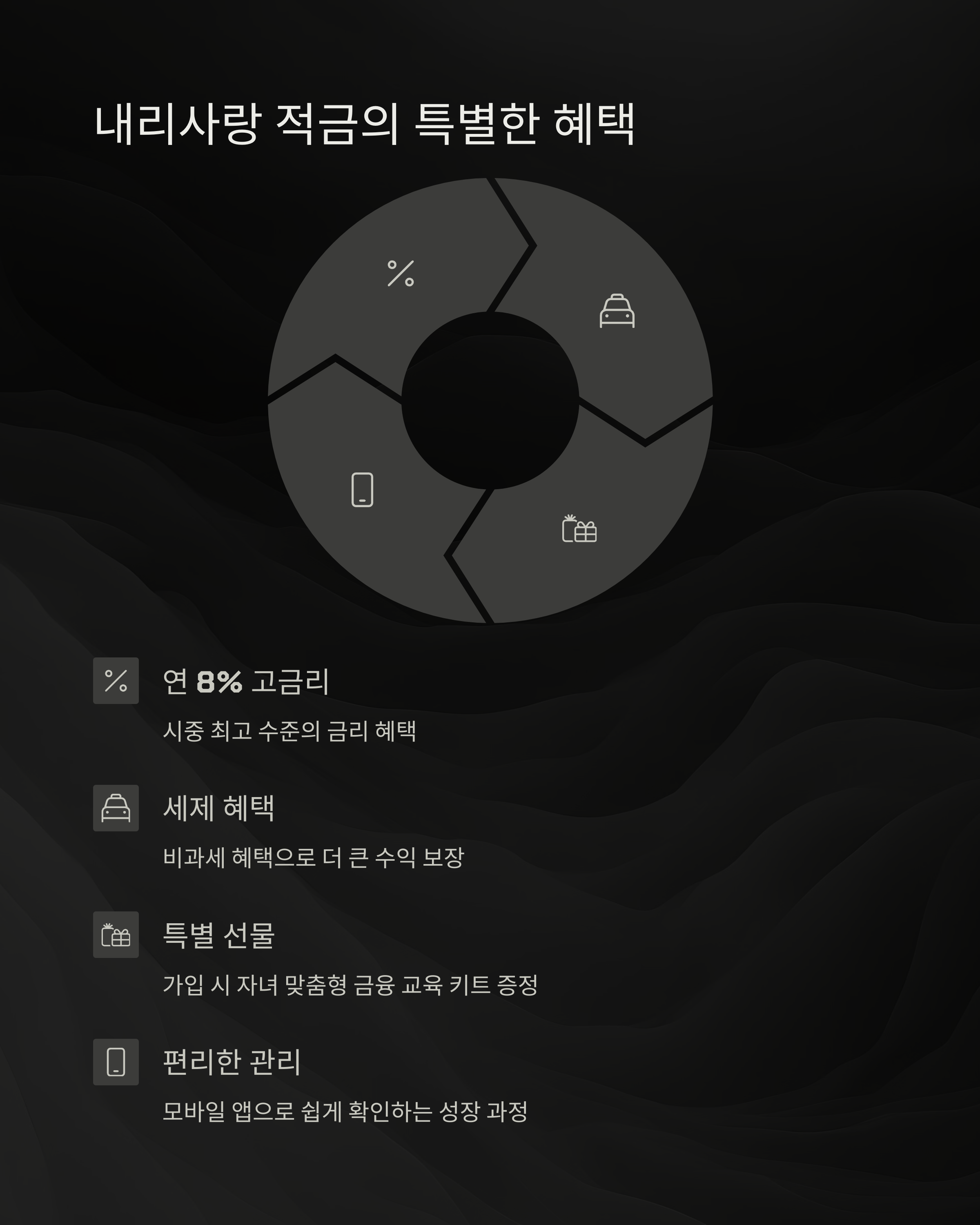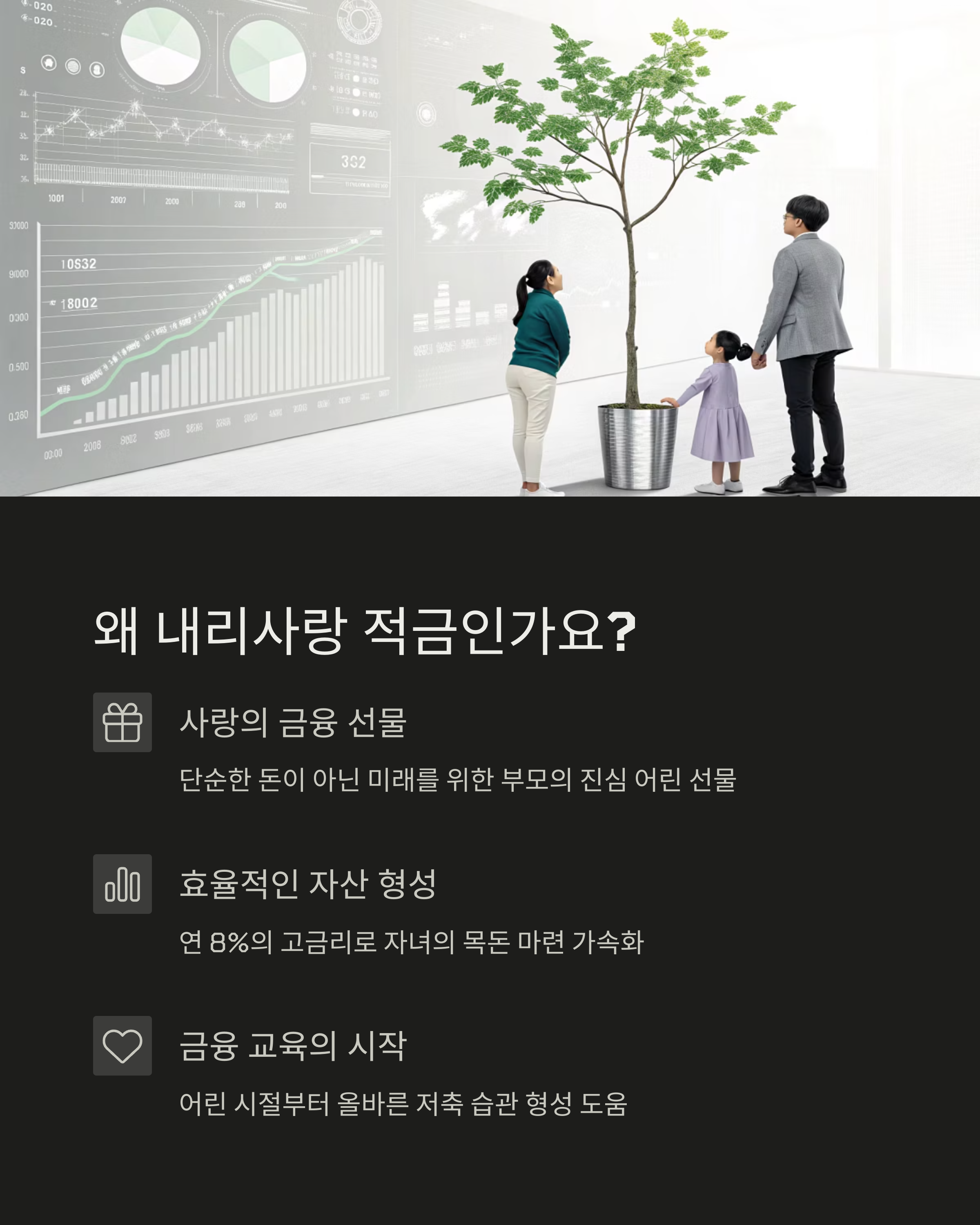 자녀나 손주에게 고금리 혜택과 재무 습관을 선물하고 싶은 부모·조부모 세대에게 적합합니다.