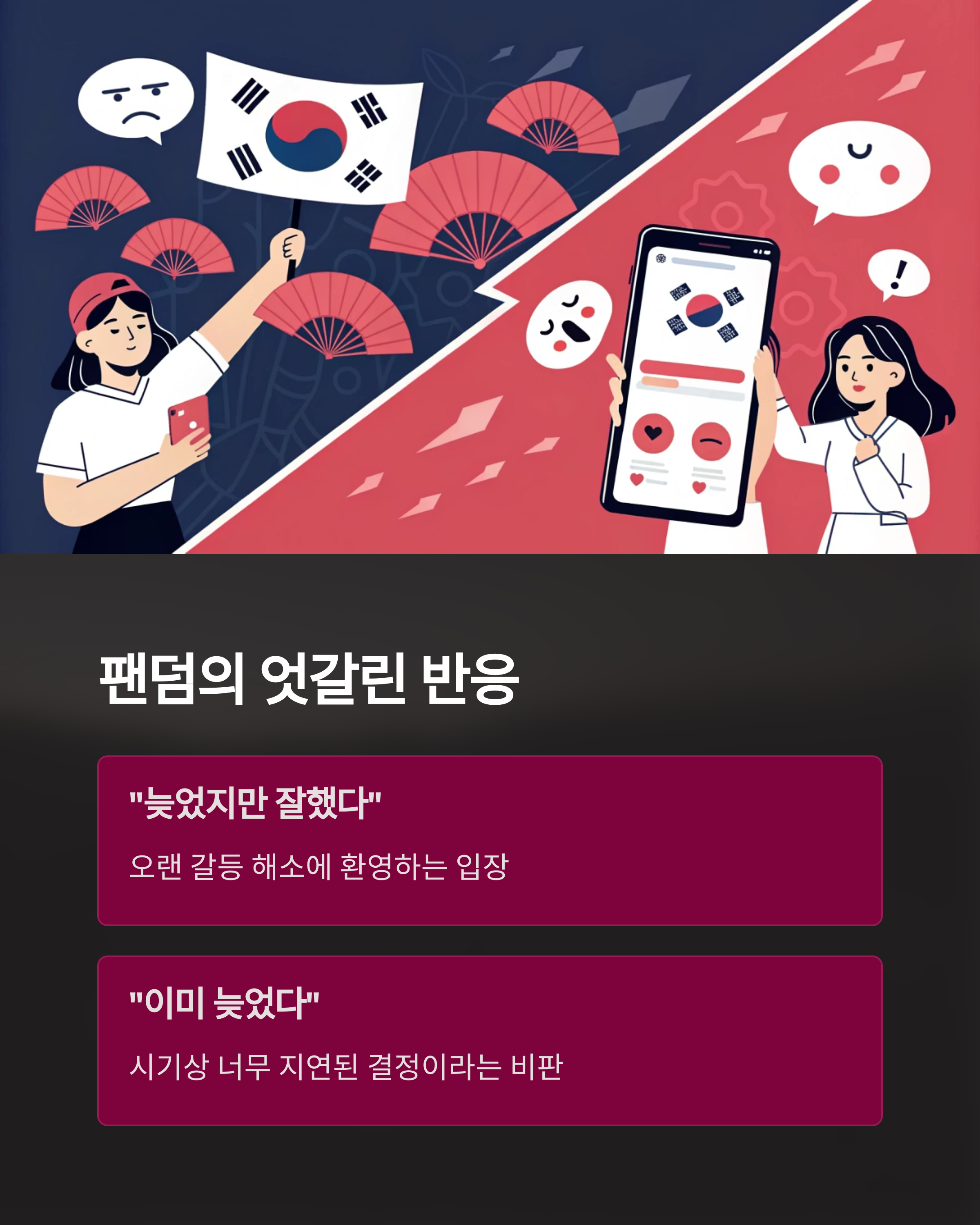 - 팬덤과의 신뢰는 결국 시간과 진정성으로 회복된다