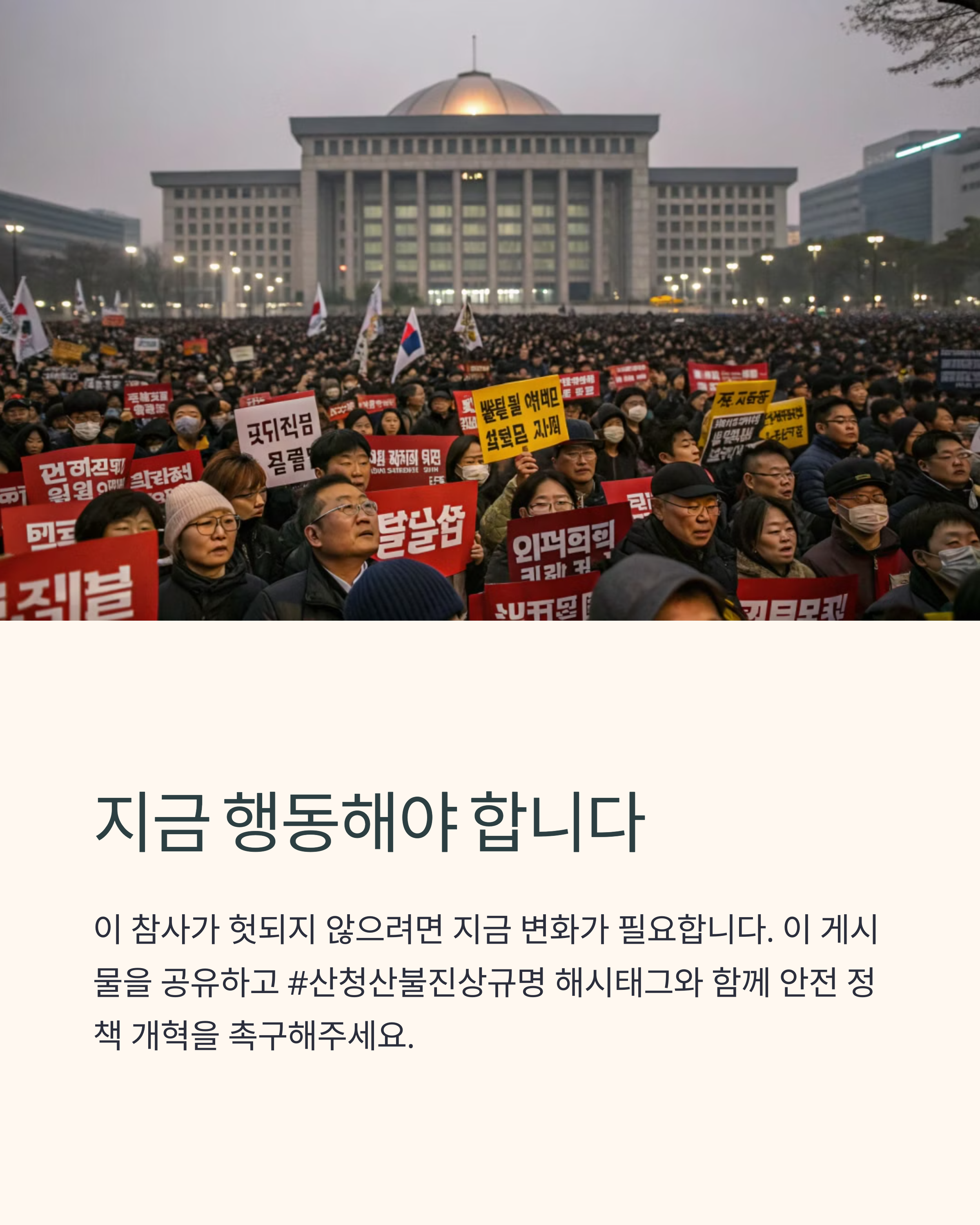 산불은 자연재해지만, 이번 산청 산불은 너무도 인재(人災)에 가까웠습니다. 생존자들의 “우리는 그냥 불 속으로 밀려들어갔다”는 말은 단순한 울분이 아니라 우리 시스템이 사람을 어떻게 다루는지를 보여주는 슬픈 단면입니다. 이제는 단지 복구를 넘어서, 제도와 문화 자체를 바꿔야 할 때입니다. 여러분의 생각은 어떠신가요? 댓글로 함께 이야기 나눠요.