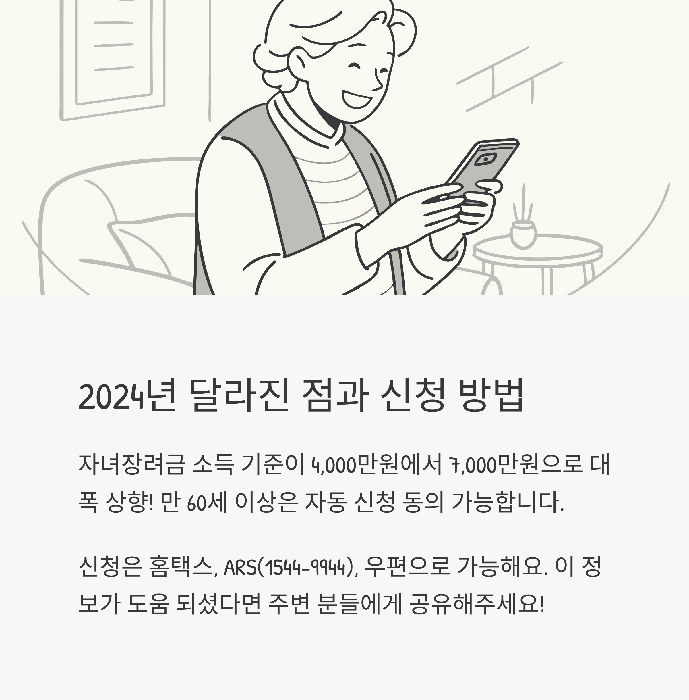 자동 신청 동의는 ARS, 홈택스 앱 등으로 간단하게 할 수 있다고 하니, 부모님이나 주변 어르신들께 알려드리면 정말 좋아하실 거예요.