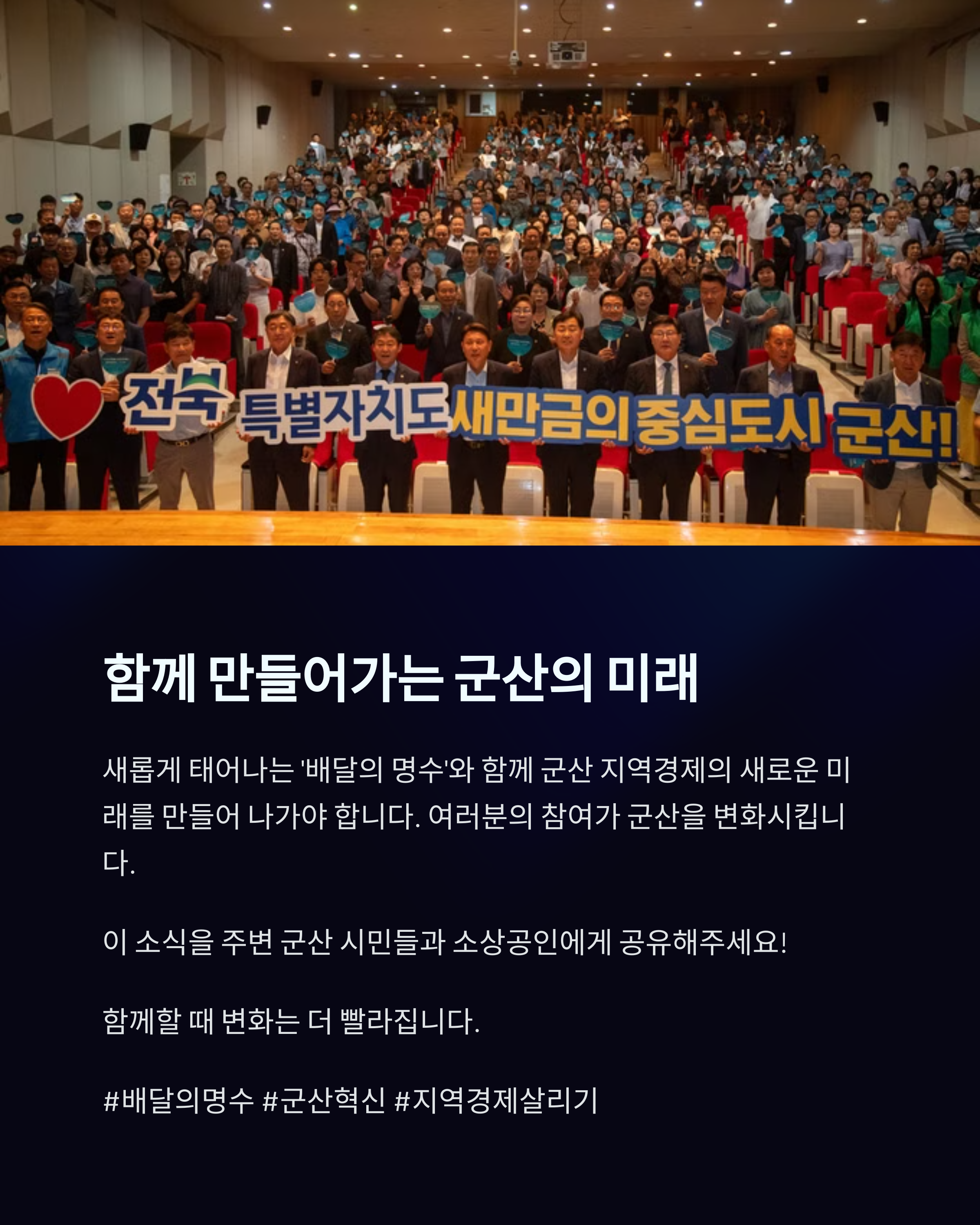 ‘배달의 명수’는 단순한 배달앱을 넘어, 군산 지역 소상공인의 생존과 연결된 중요한 플랫폼입니다. 지금은 위기일지 몰라도, AI 기술과 실질적 지원이 더해진다면 다시 활기를 찾을 수 있어요. 공설시장 밀키트, SEO 블로그, 개인화 서비스… 그 어느 것 하나 허투루 볼 수 없죠. 여러분도 군산을 방문하거나, 근처에 계시다면 한 번쯤 ‘배달의 명수’를 다시 열어보는 건 어떨까요? 작지만 확실한 변화는 지금부터 시작됩니다.