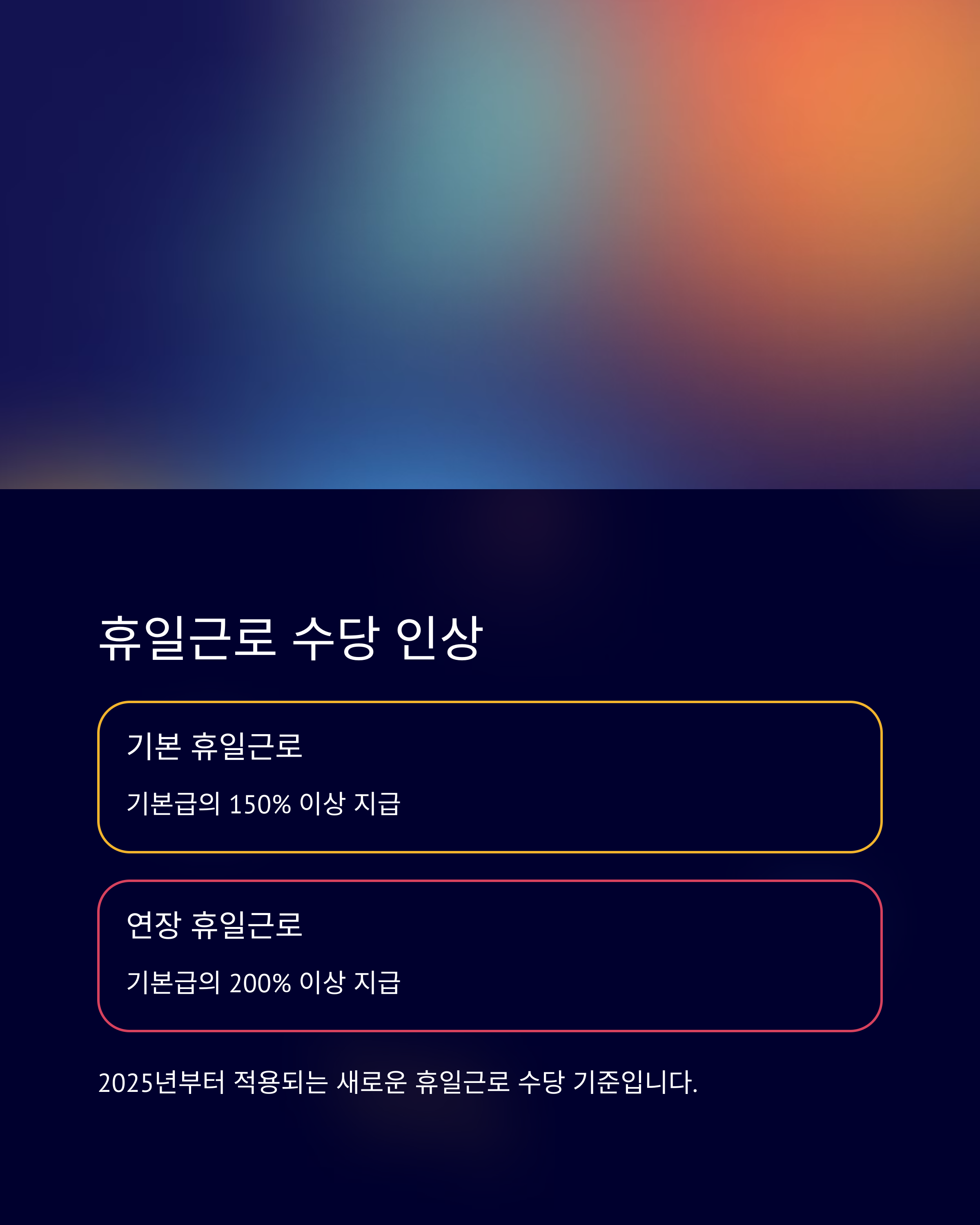 2025년부터는 근로자의 날에 근무할 경우 기본급의 150% 이상을 수당으로 지급해야 합니다. 연장근로 시 200% 이상이 적용됩니다.