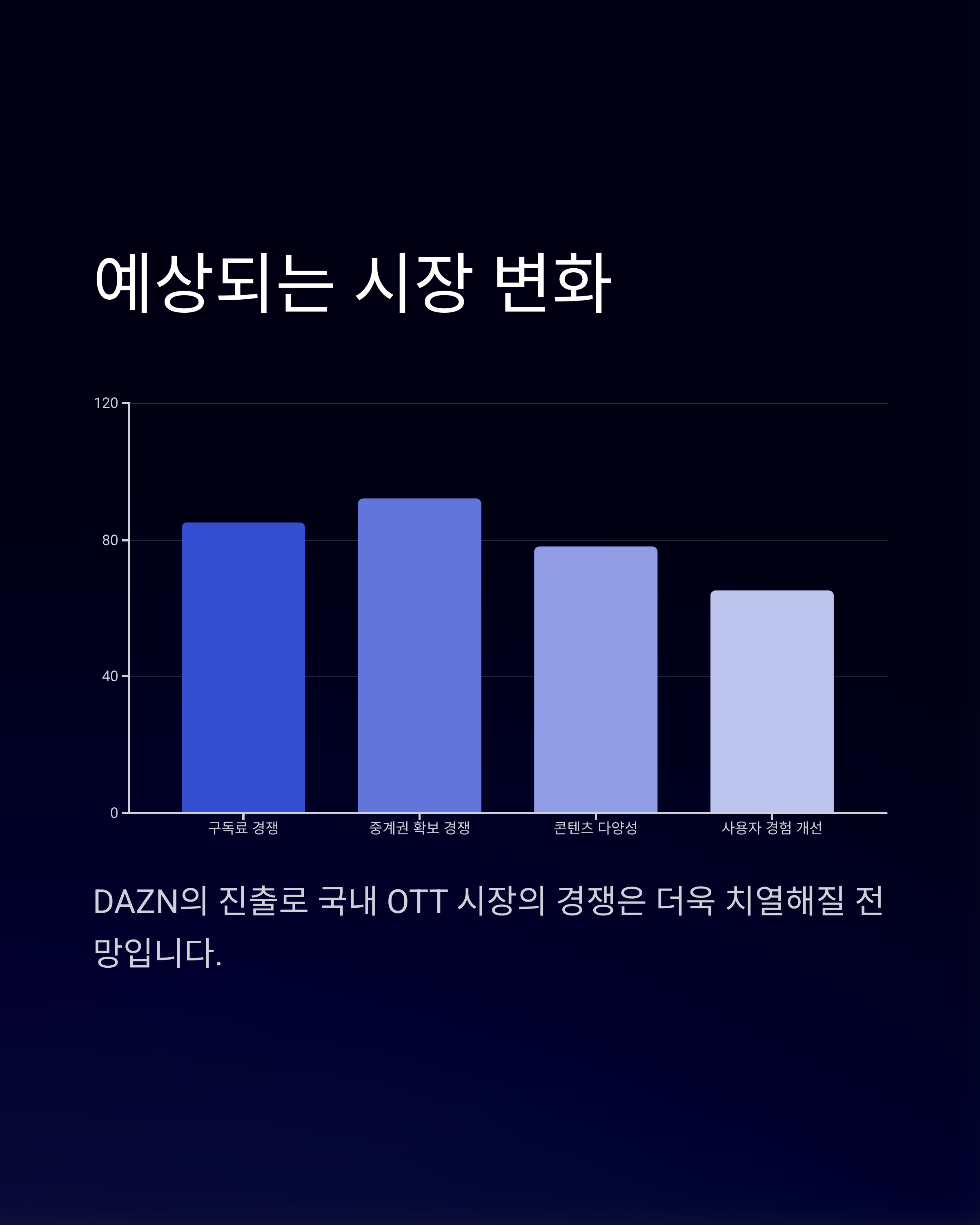 DAZN의 등장은 쿠팡플레이와 티빙 등 기존 국내 OTT 강자들에게 강력한 자극이 될 것으로 보입니다. 비교 포인트는 다음과 같아요: