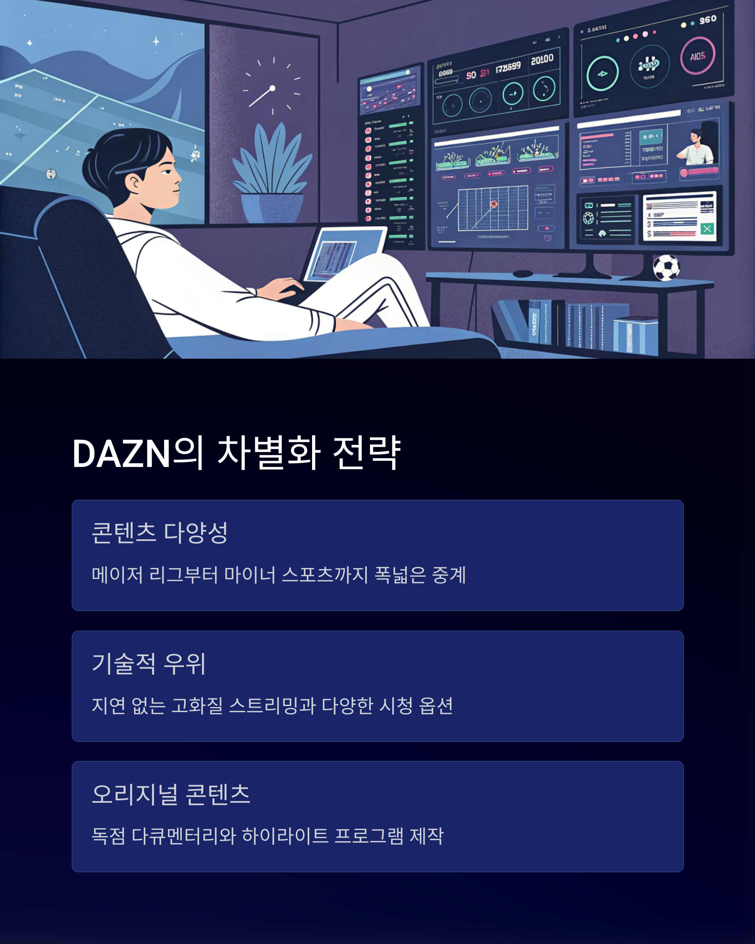 - DAZN: 다양한 종목 + 독점 경기 중계 강점