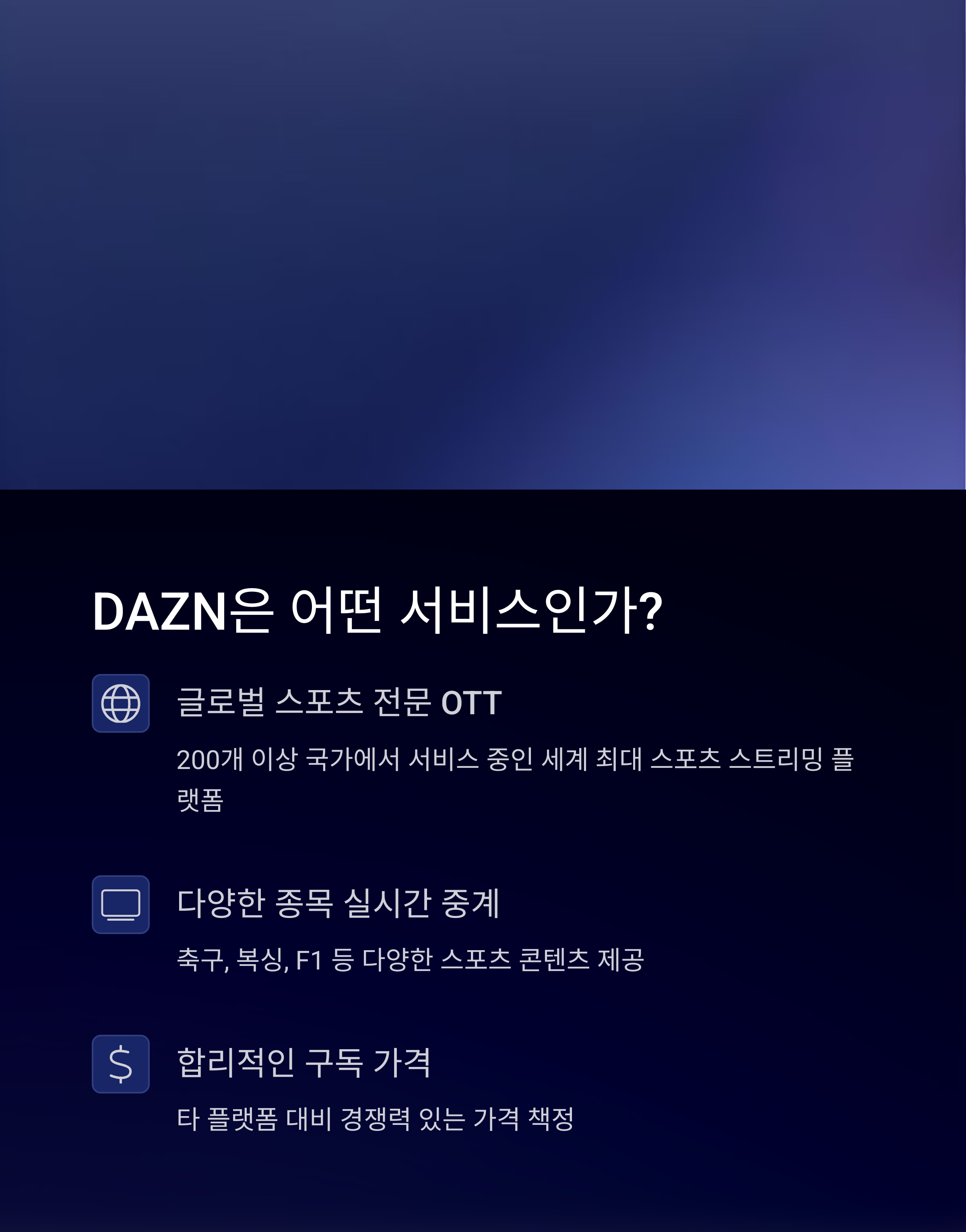 - DAZN: 다양한 종목 + 독점 경기 중계 강점
