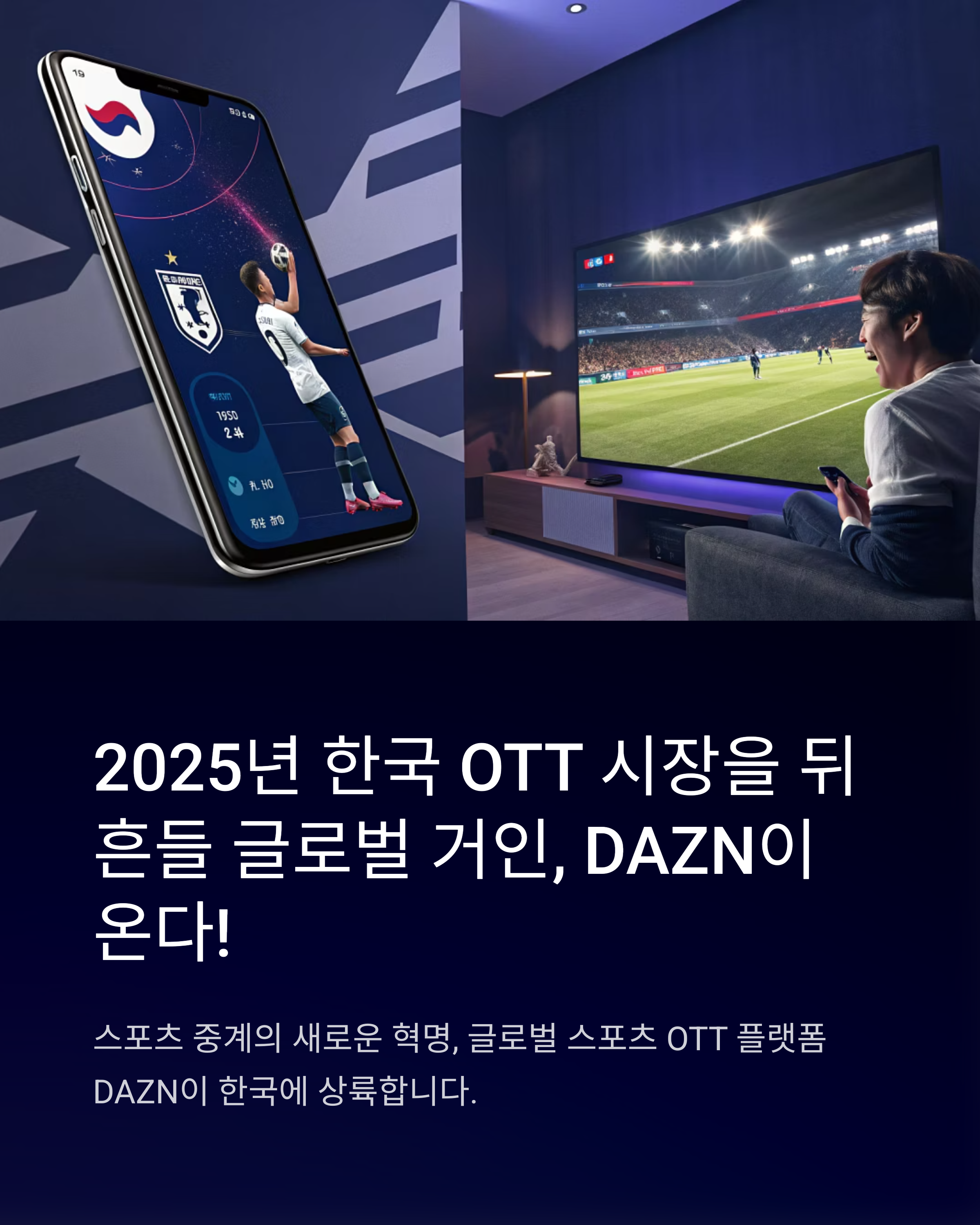 안녕하세요, OTT와 스포츠를 모두 사랑하는 블로그지기입니다! 요즘 OTT 시장이 정말 뜨겁죠. 그런데 이번에는 진짜 게임 체인저가 등장할 것 같습니다. 2025년 5월 기준, 글로벌 스포츠 스트리밍 강자 DAZN이 한국 진출을 공식화하며, 쿠팡플레이와 티빙 등 국내 OTT 강자들에게 긴장감을 주고 있어요. 오늘은 DAZN의 강점과 한국 시장 공략 전략, 그리고 향후 OTT 시장 판도까지 예측해볼게요!