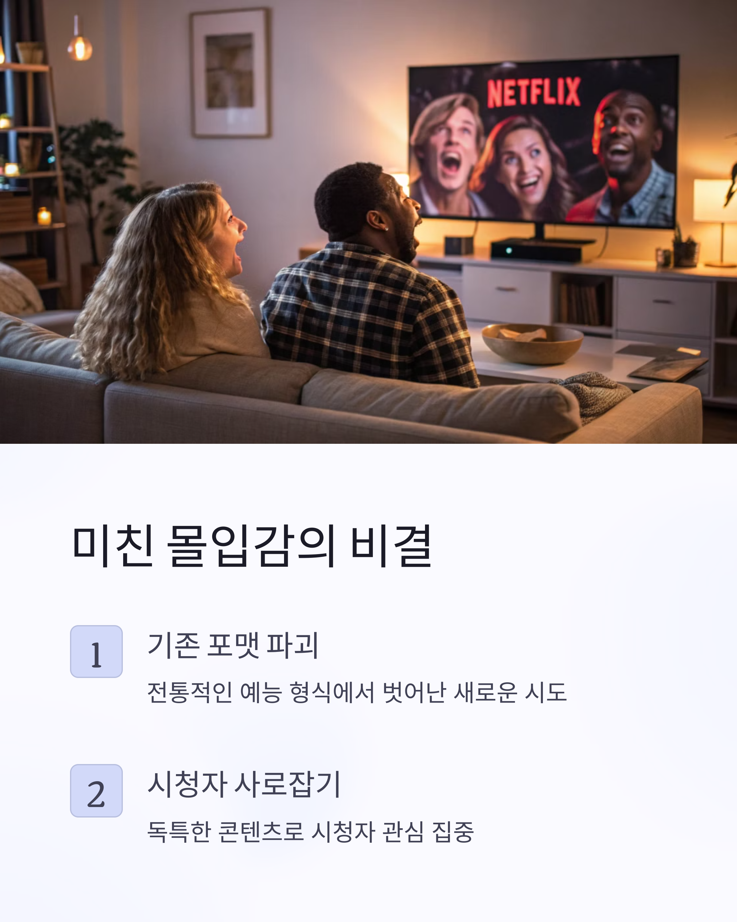 만약 이 예능이 마음에 들었다면, 아래 넷플릭스 콘텐츠도 즐기실 거예요. 장르도 포맷도 다르지만, 공통점은 하나. 예측불가함과 몰입감이 핵심이라는 점!