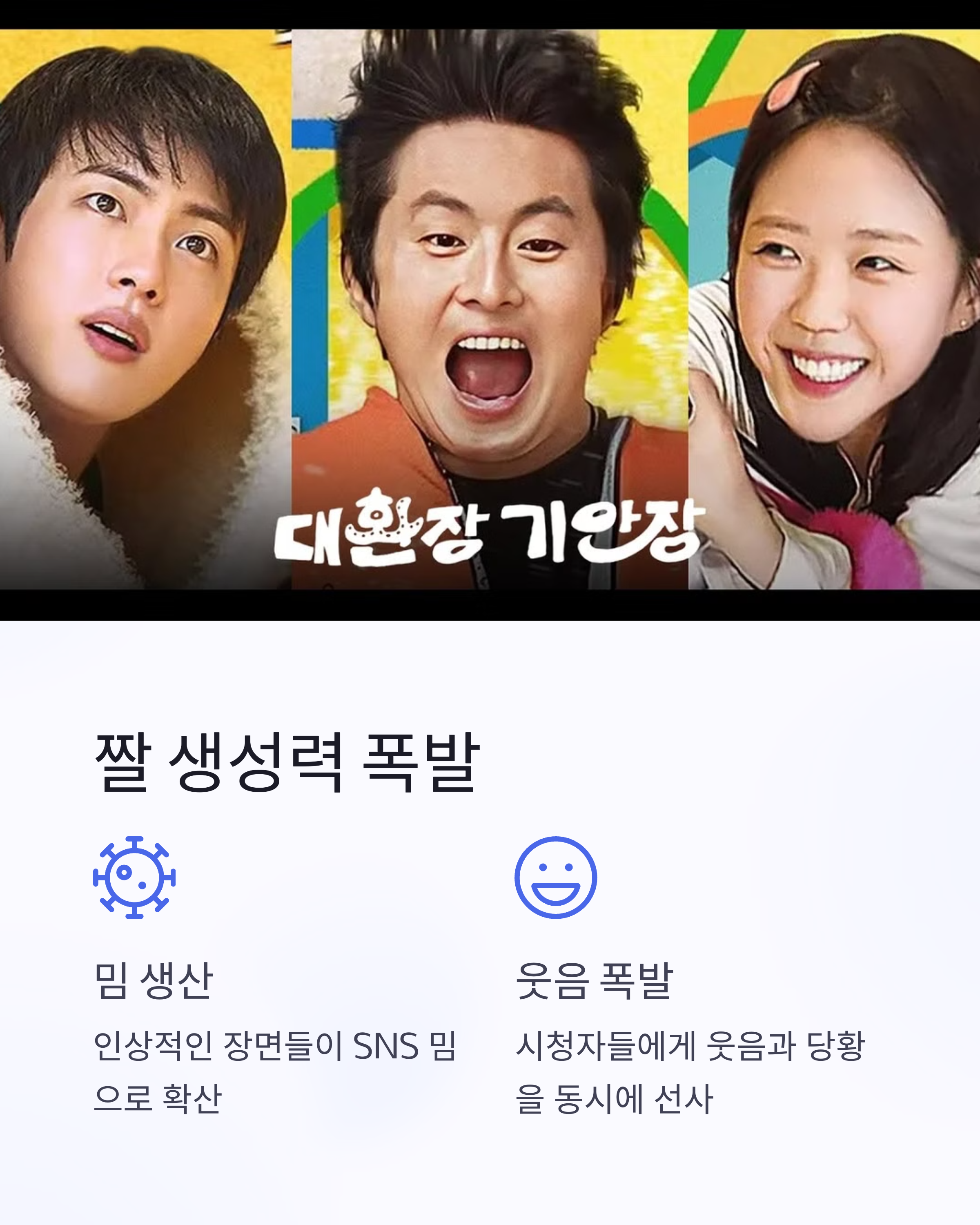 | SNS 반응 폭발 | 짤방 생성력+공감력 모두 만렙 |