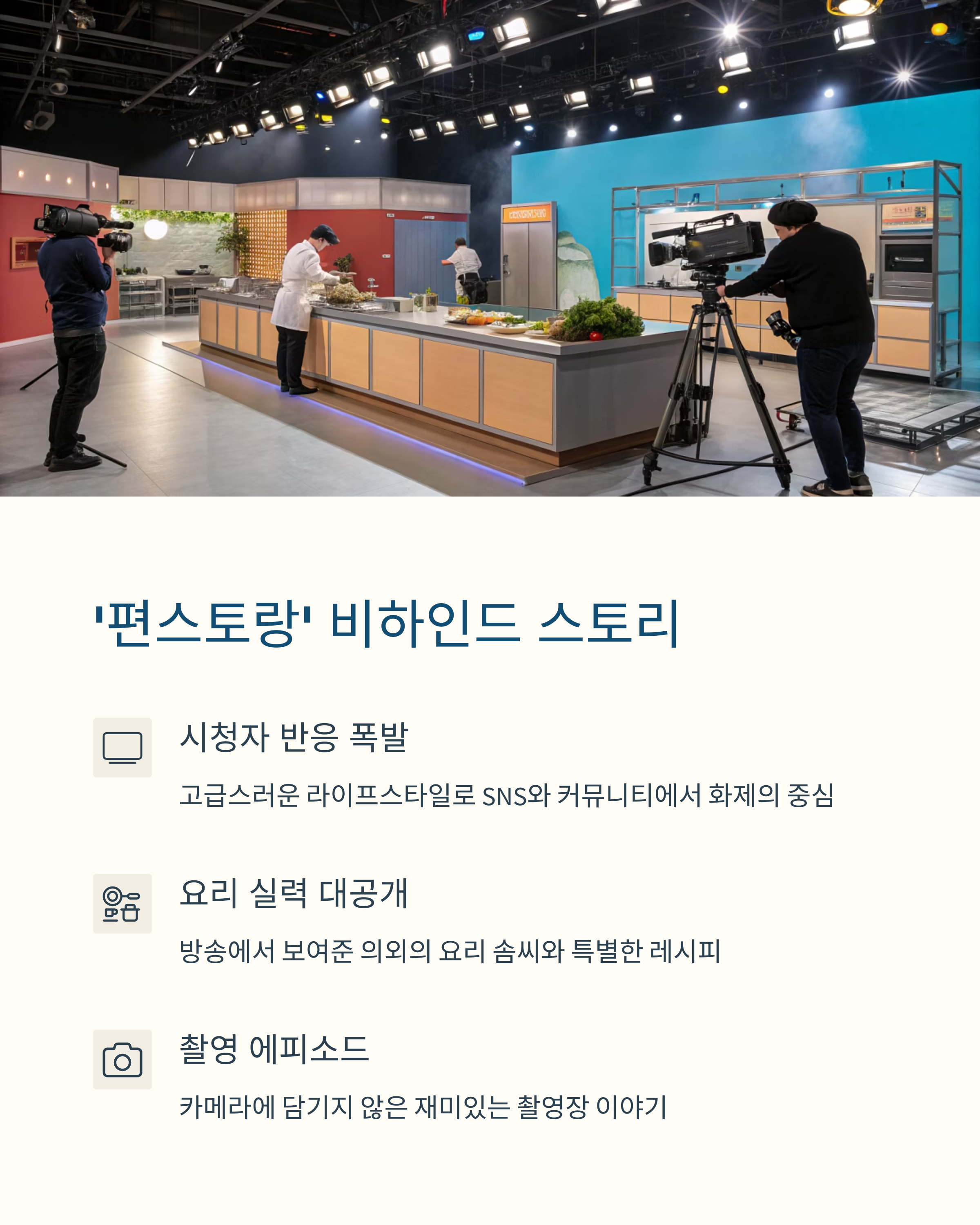 냉장고 내부 공개와 명품 브랜드 조리도구 사용 장면, 그리고 직접 만든 반찬 세트가 많은 시청자들의 시선을 사로잡았어요.