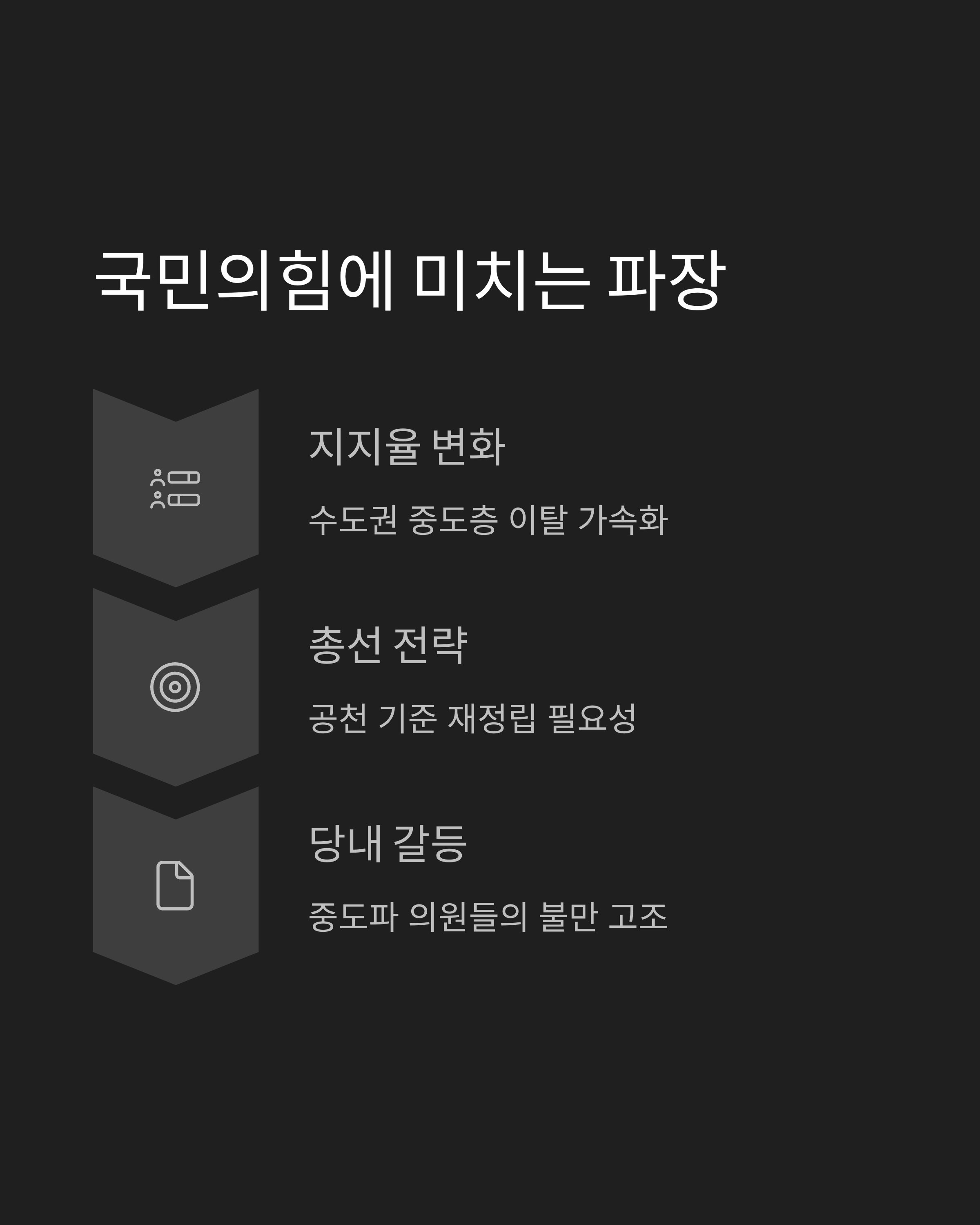 김상욱 의원의 탈당은 단순한 개인의 결단을 넘어 국민의힘의 정체성 혼란을 드러내는 결정적인 계기가 되었습니다. 특히 중도층의 민심이탈, 당 내 갈등 노출, 총선 전략 수정 등 다양한 영향을 주고 있습니다.