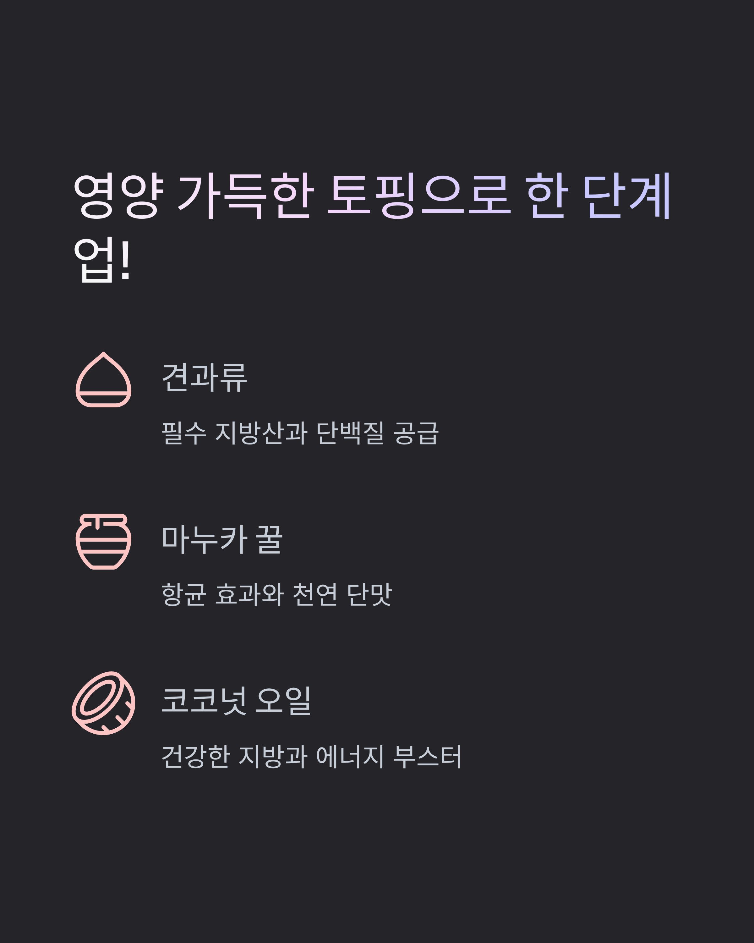 마누카 꿀, 견과류, 코코넛 오일의 시너지