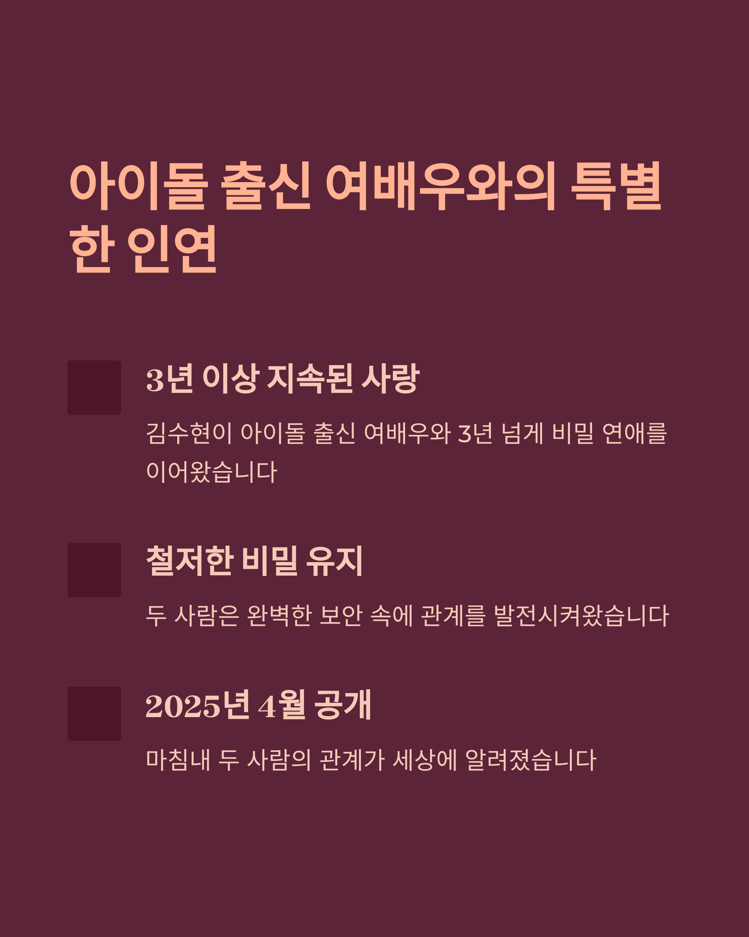"김수현 열애설, 이번엔 누구?" 2025년 4월, 충격과 궁금증을 동시에 자아낸 연예계 핫이슈! 3년 동안 조용히 사랑을 키운 '아이돌 출신 여배우' 정체와, 김새론과의 엇갈린 소문까지 총정리합니다.