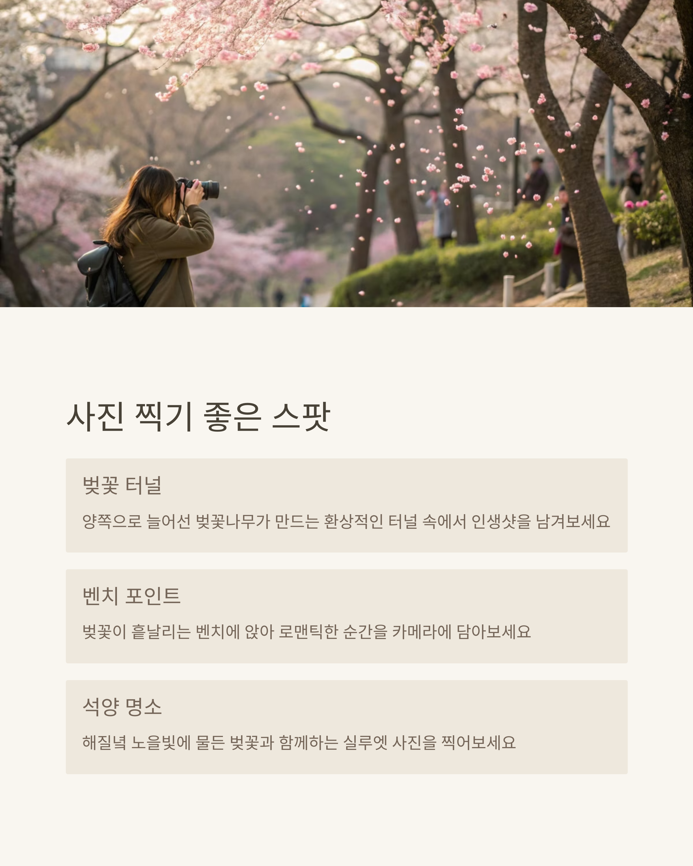 • 벚꽃길 산책 – 벚꽃비 맞으며 걷기