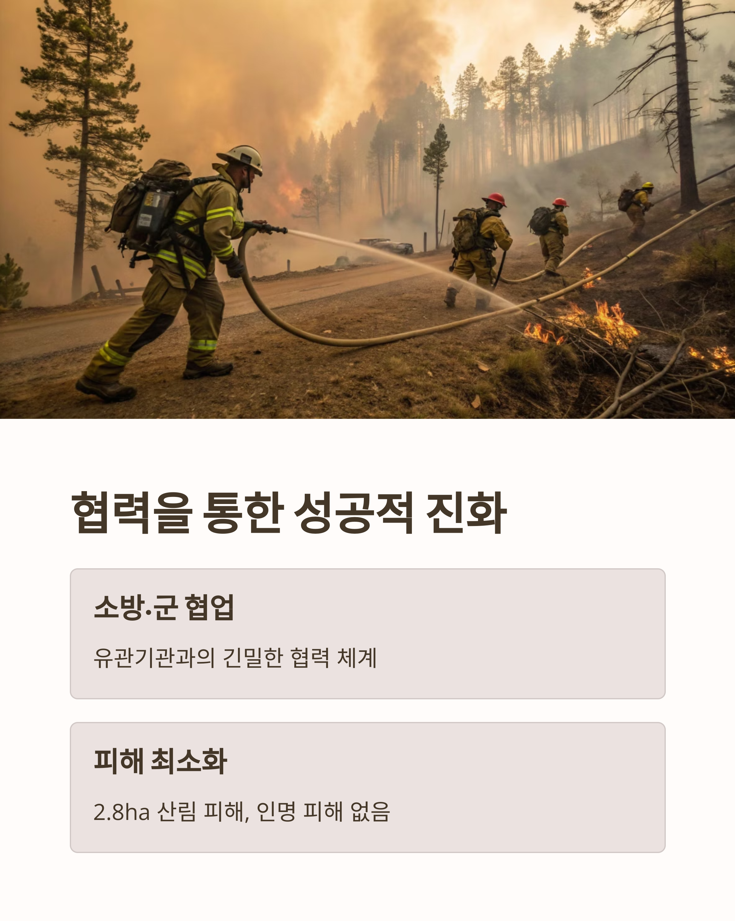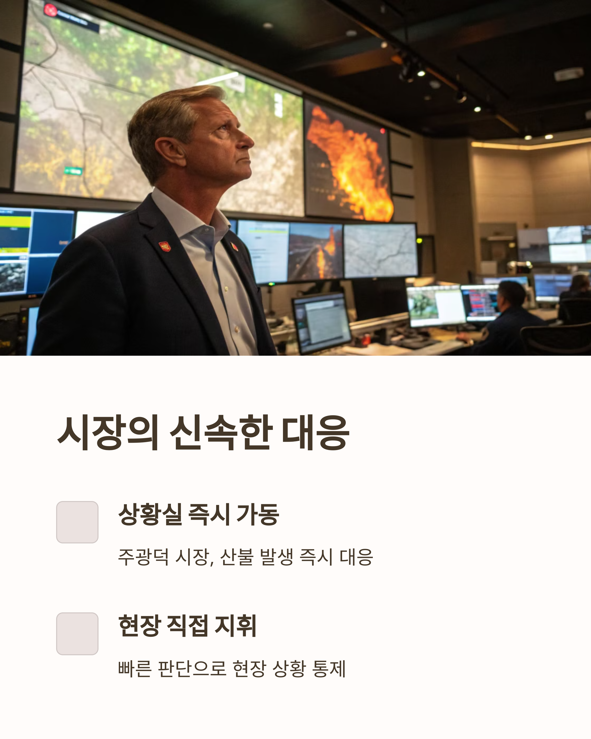 상황 발생 직후 재난상황실 가동, 현장 직접 방문, 소방·군과 협업하여 진화를 지휘했습니다.
