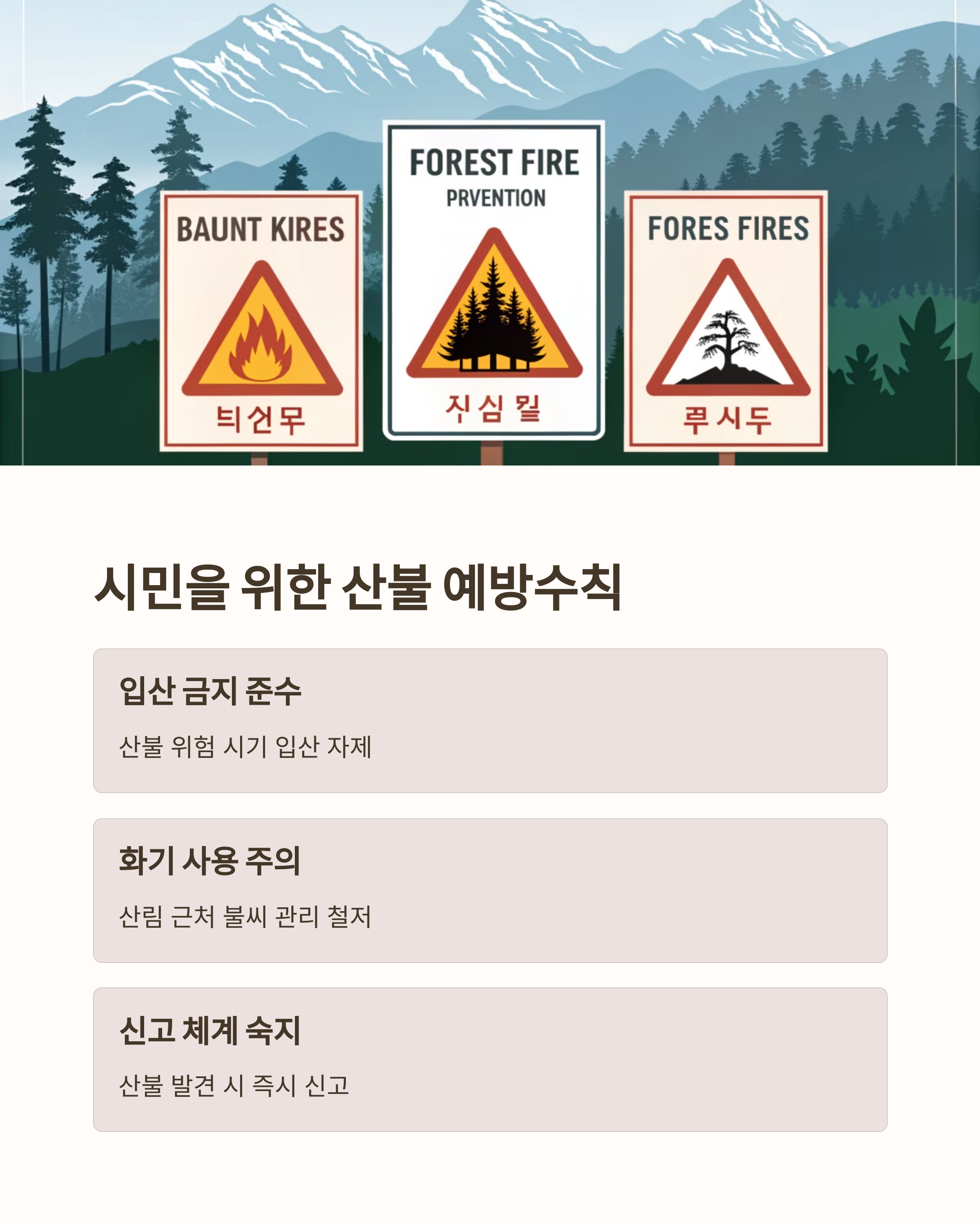 특히 올해는 산불취약지역 27개소를 지정하여 집중 순찰을 강화하고 있으며, 주말과 공휴일에는 공무원과 자원봉사단도 비상근무 체계를 유지하고 있어요. 이번 백봉산 산불에서도 해당 시스템이 조기에 가동되어 피해를 최소화하는 데 큰 역할을 했습니다.
