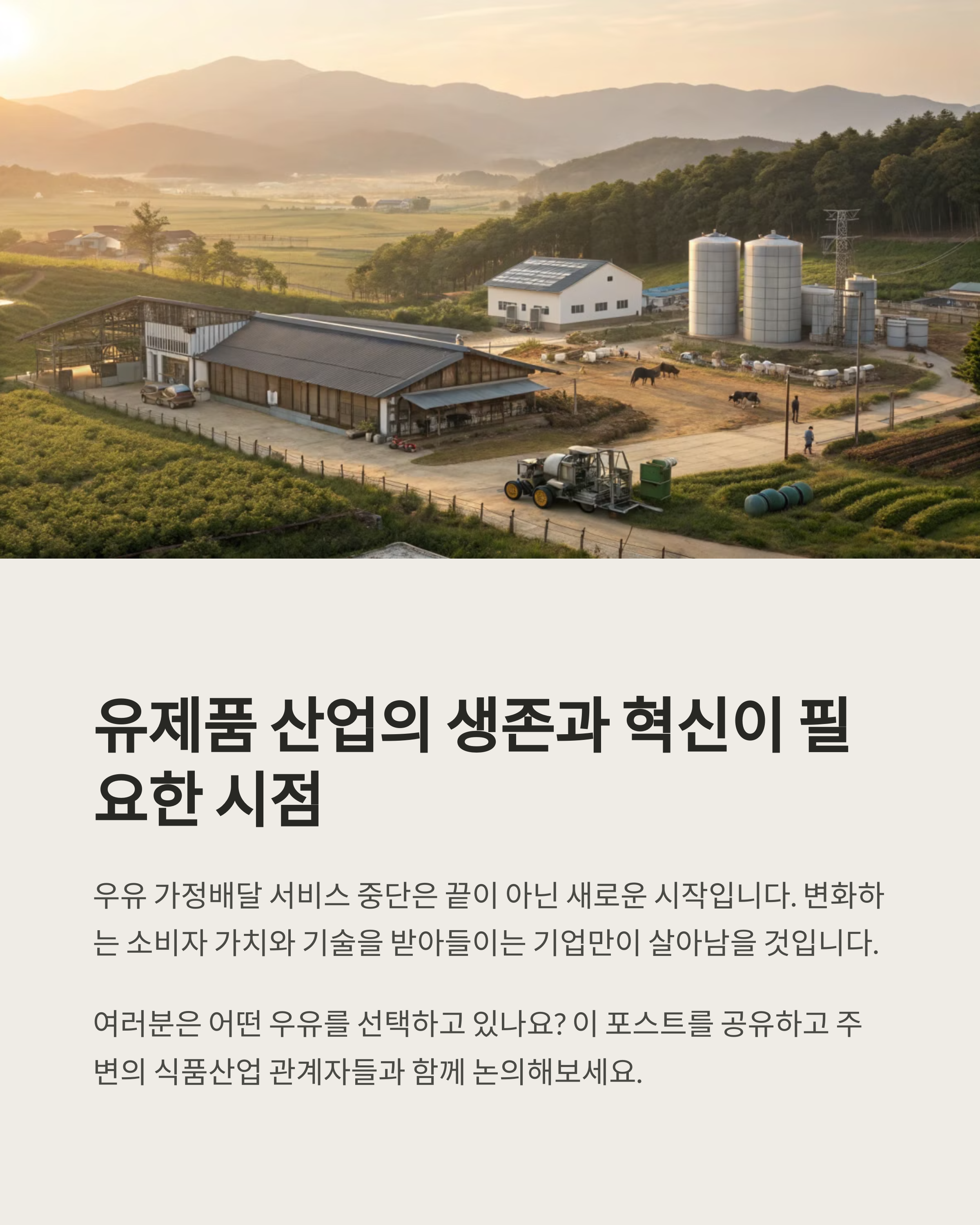 서울우유의 결정은 단순한 서비스 축소가 아니라 유제품 산업 구조 전체가 바뀌고 있다는 사실을 보여줍니다. 국내 원유 생산은 축소되고 있고, 생산자 평균 연령은 점점 높아지는 반면, 수요는 급감 중이에요. 여기에 물류·유통비용의 상승, 환경 문제에 대한 인식 변화까지 겹치면서 기존 모델은 지속 가능성을 잃어가고 있습니다. 이는 단순히 서울우유만의 문제가 아니라, 낙농업 전반이 겪는 전환기적 현상으로 볼 수 있습니다.