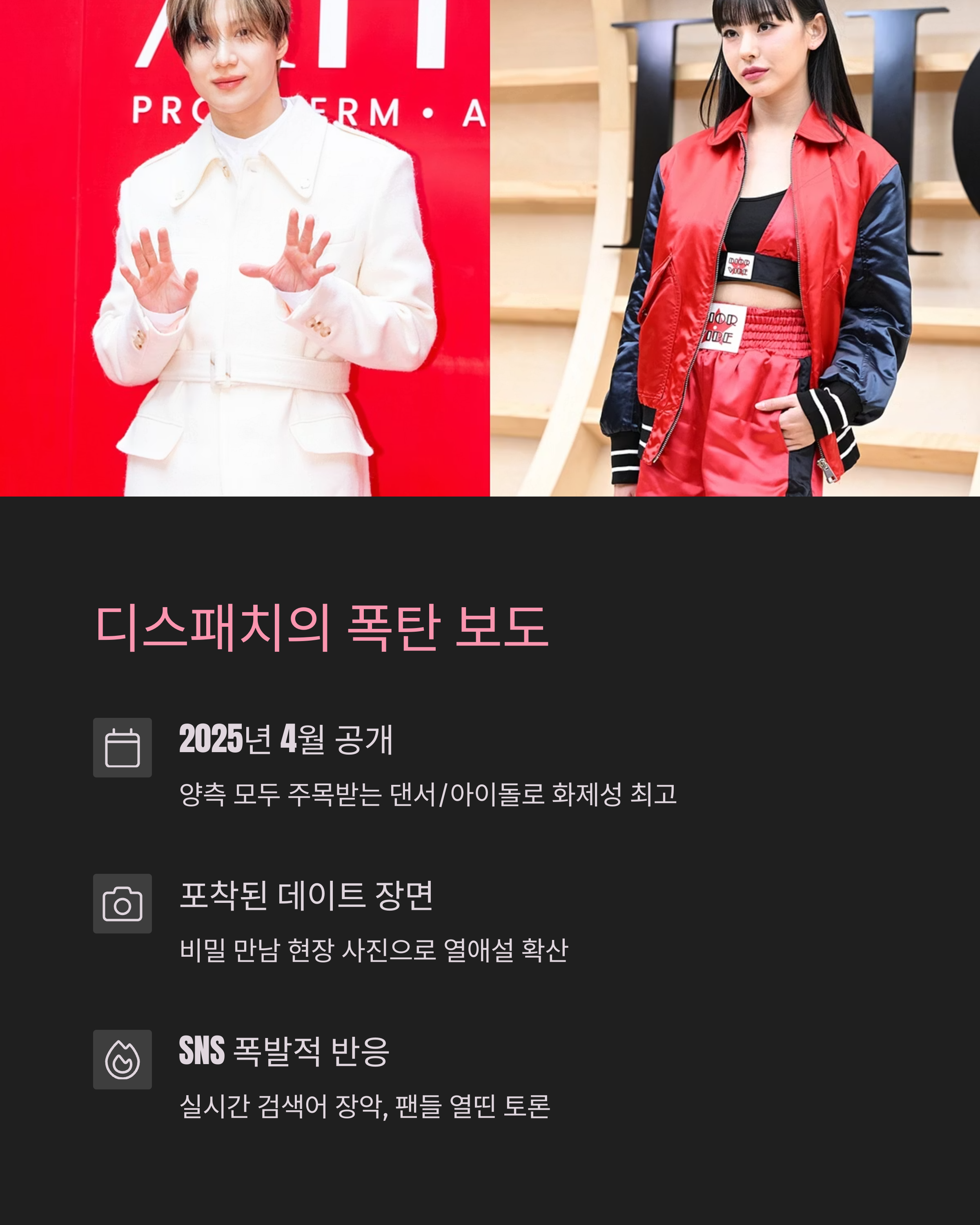 "2025년 4월, 연예계가 또 한번 뒤집혔습니다. 이번 주 SNS 실시간 트렌드 1위는 다름 아닌 ‘노제 태민 열애설’이죠."