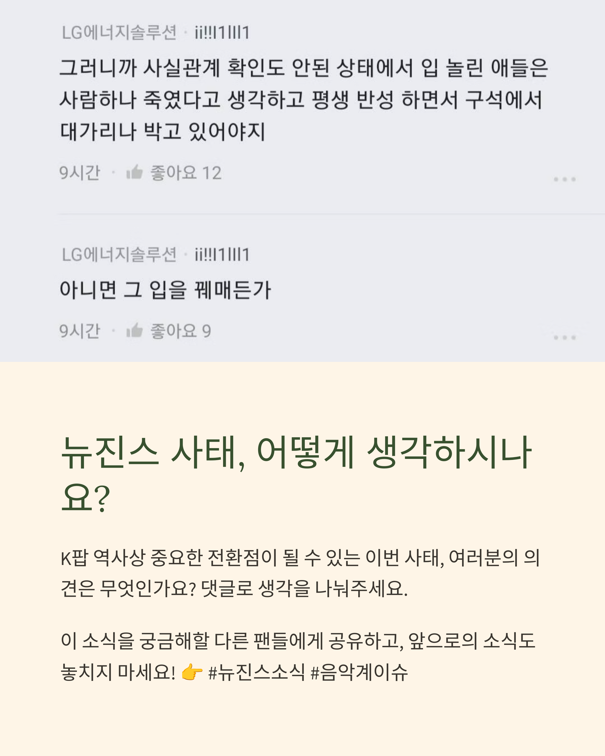 | 걱정 & 우려 | "멤버들은 잘못 없는데 피해만 보는 것 같다" |