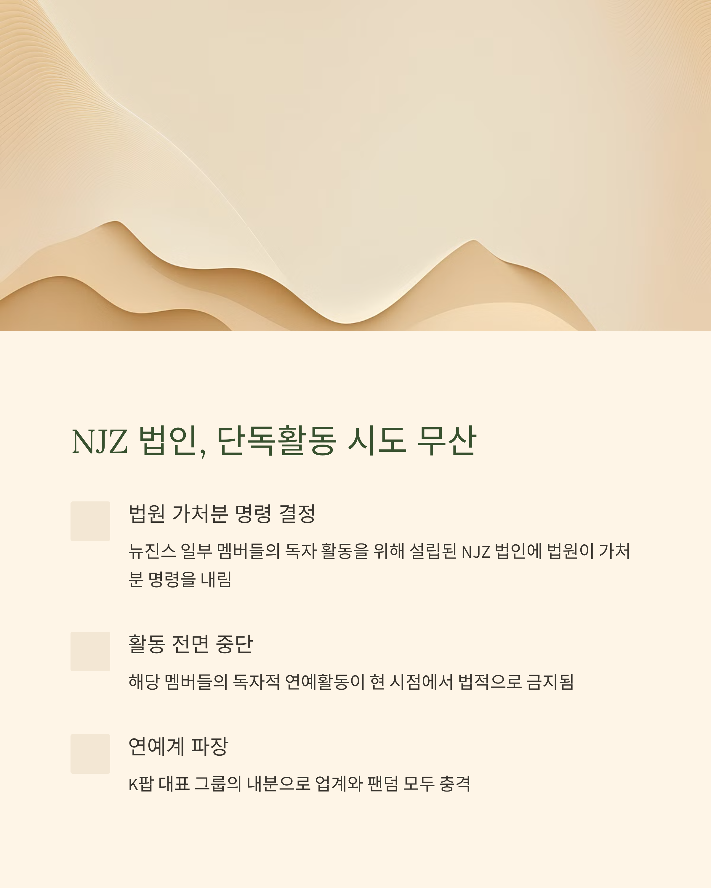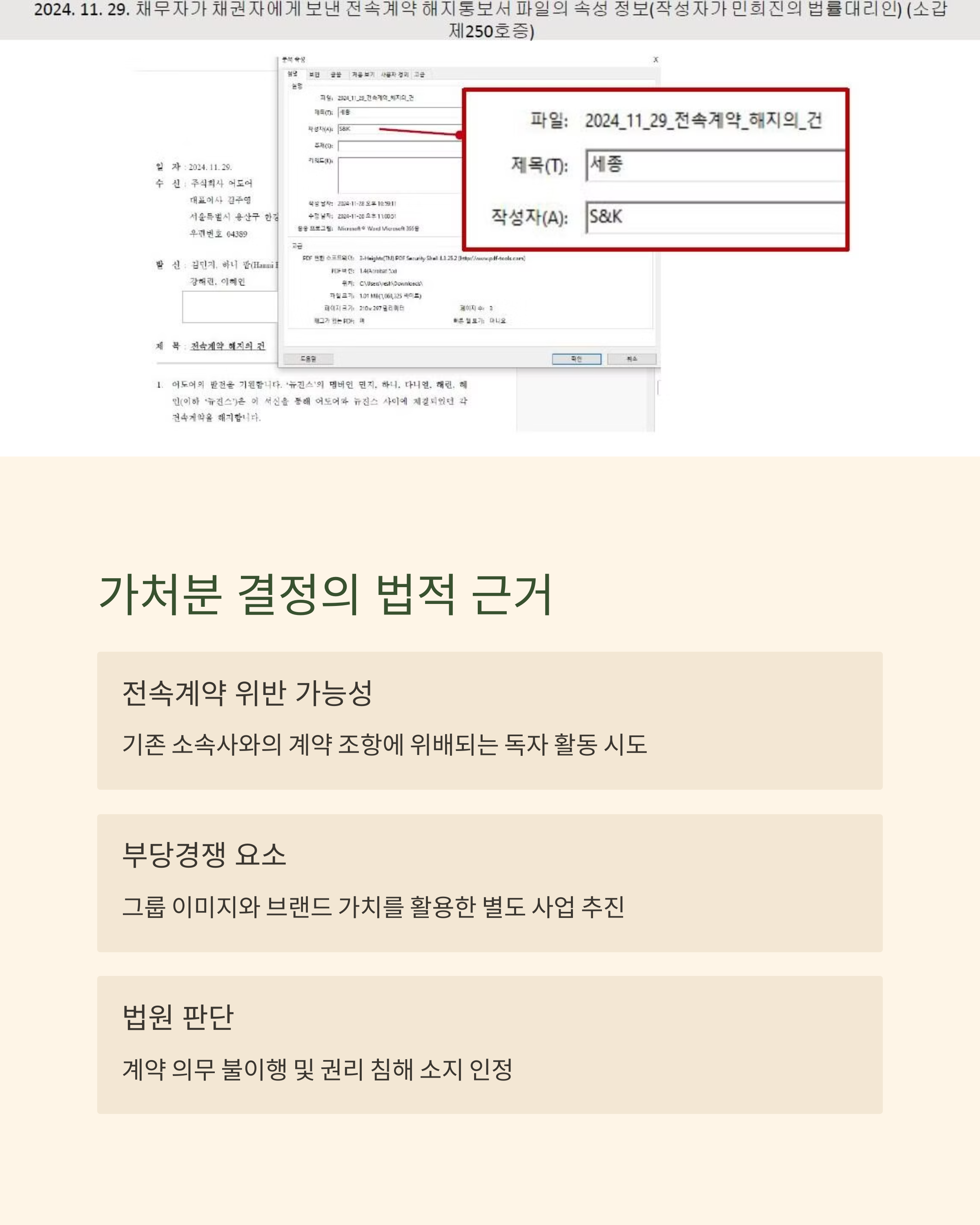 요약하자면, 법원은 NJZ가 무단으로 멤버 개별 활동을 추진한 것은 기존 계약을 침해하는 행위라고 본 것이죠. 단순한 단독활동이 아니라, 체계적인 ‘기획사 무시’로 판단된 겁니다.