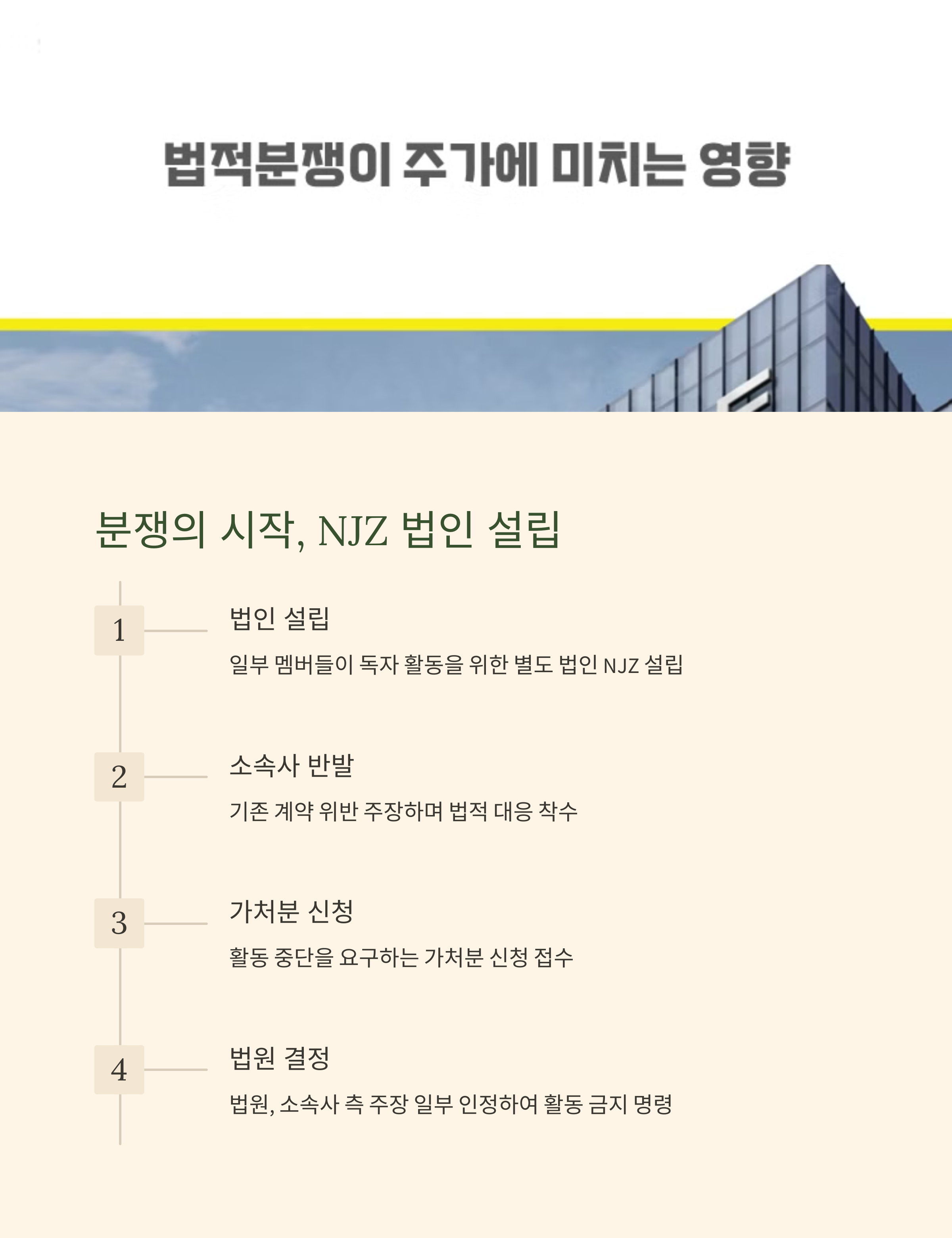 사건은 NJZ라는 신설 법인이 뉴진스 멤버들과 단독 계약을 맺으려 했다는 보도로 시작됐어요. 기존 소속사 ADOR 및 하이브와의 계약 상태가 유효한 상황에서 NJZ가 멤버 개별 활동을 추진하자, 원 소속사 측은 법적 대응에 나섰죠. 법원은 최근 NJZ에 대해 ‘뉴진스와 관련된 독자 활동을 금지’하는 가처분 명령을 내렸습니다. 이는 NJZ가 멤버 개인을 활용한 활동(광고, 방송, 콘텐츠 등)을 할 수 없게 되는 결정이에요. 팬들 입장에선 멤버들의 개별 활동이 막히게 된 셈이죠.