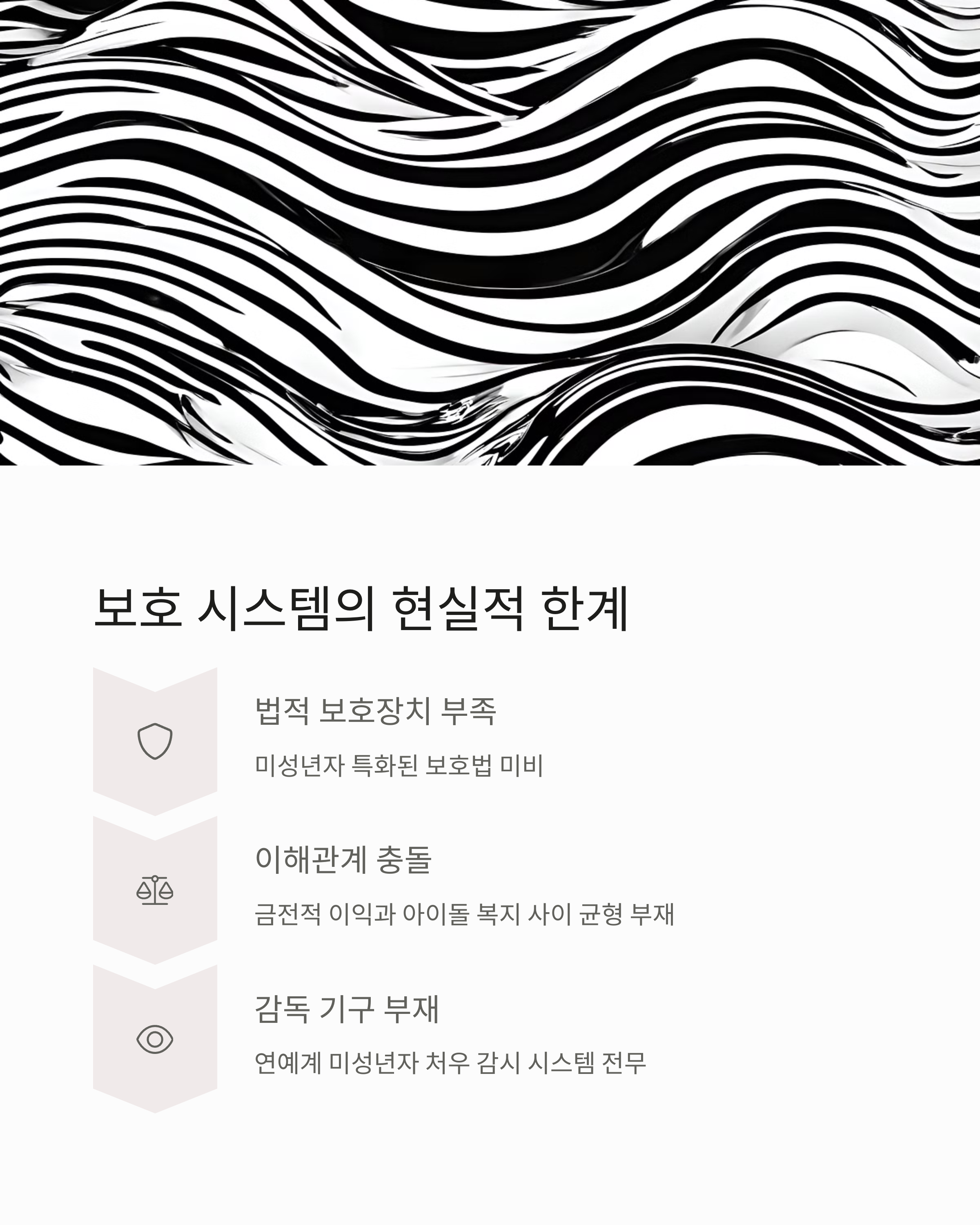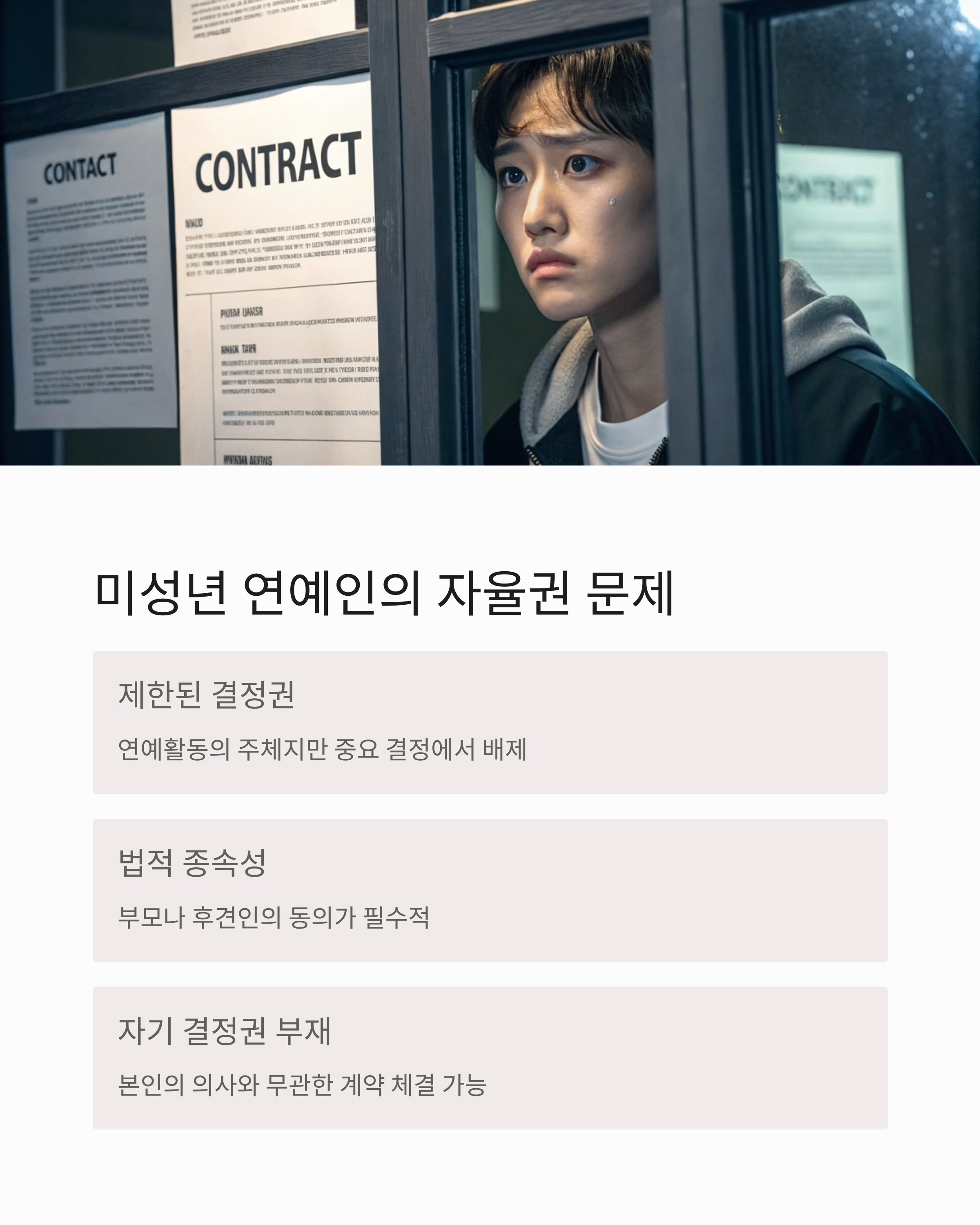 아이돌 계약은 단순히 회사와 연예인 간의 관계를 넘어서 가족까지 깊이 얽히는 경우가 많습니다. 이번 사태에서도 확인된 것처럼, 법적 보호 장치의 부재로 인해 미성년 연예인의 의사가 무시되는 사례가 발생할 수 있습니다.