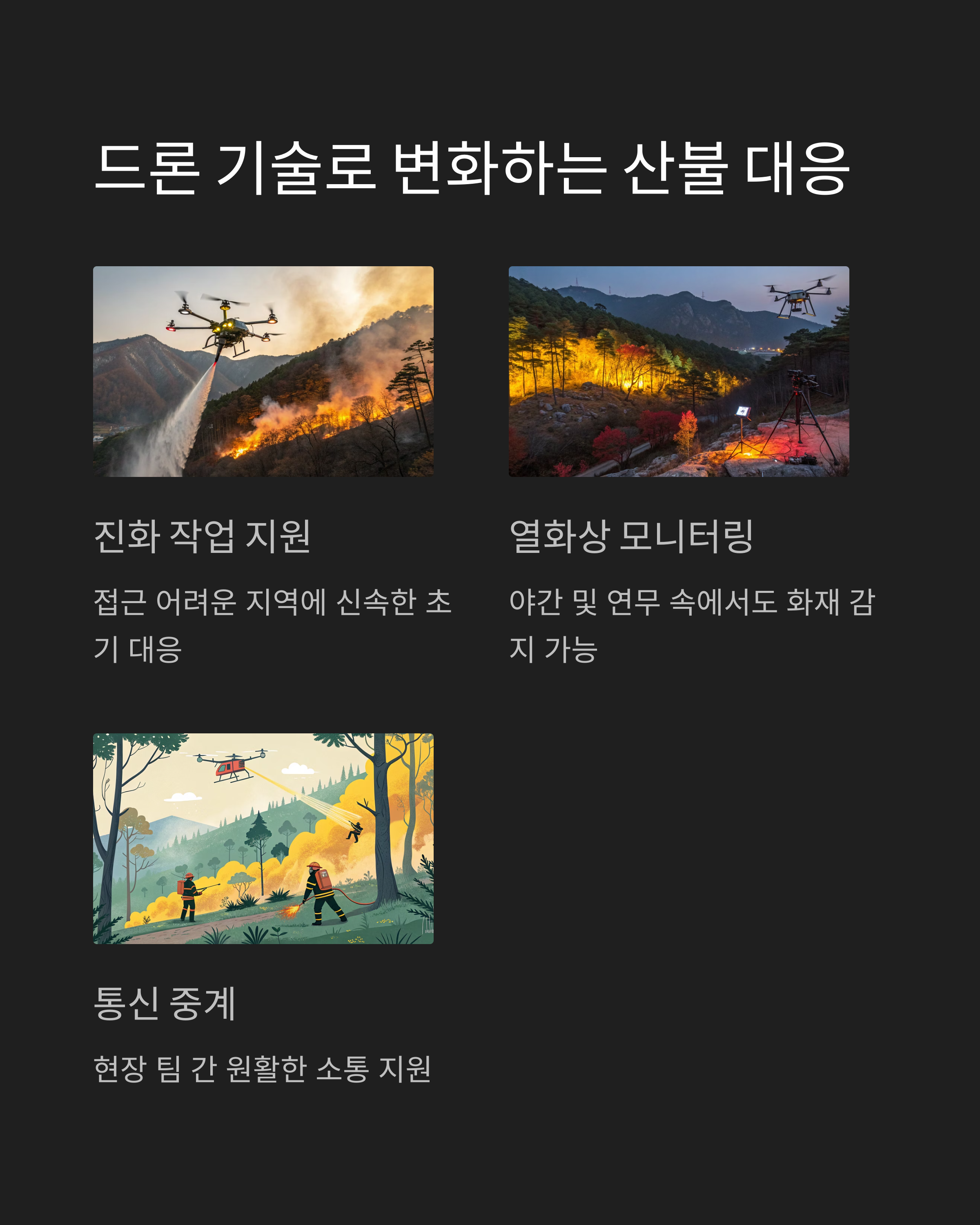 AI 기반 화재 예측 시스템과 드론 모니터링 체계가 가장 주목받고 있습니다. 일부 지역에서는 위성영상 실시간 분석도 도입되었어요.