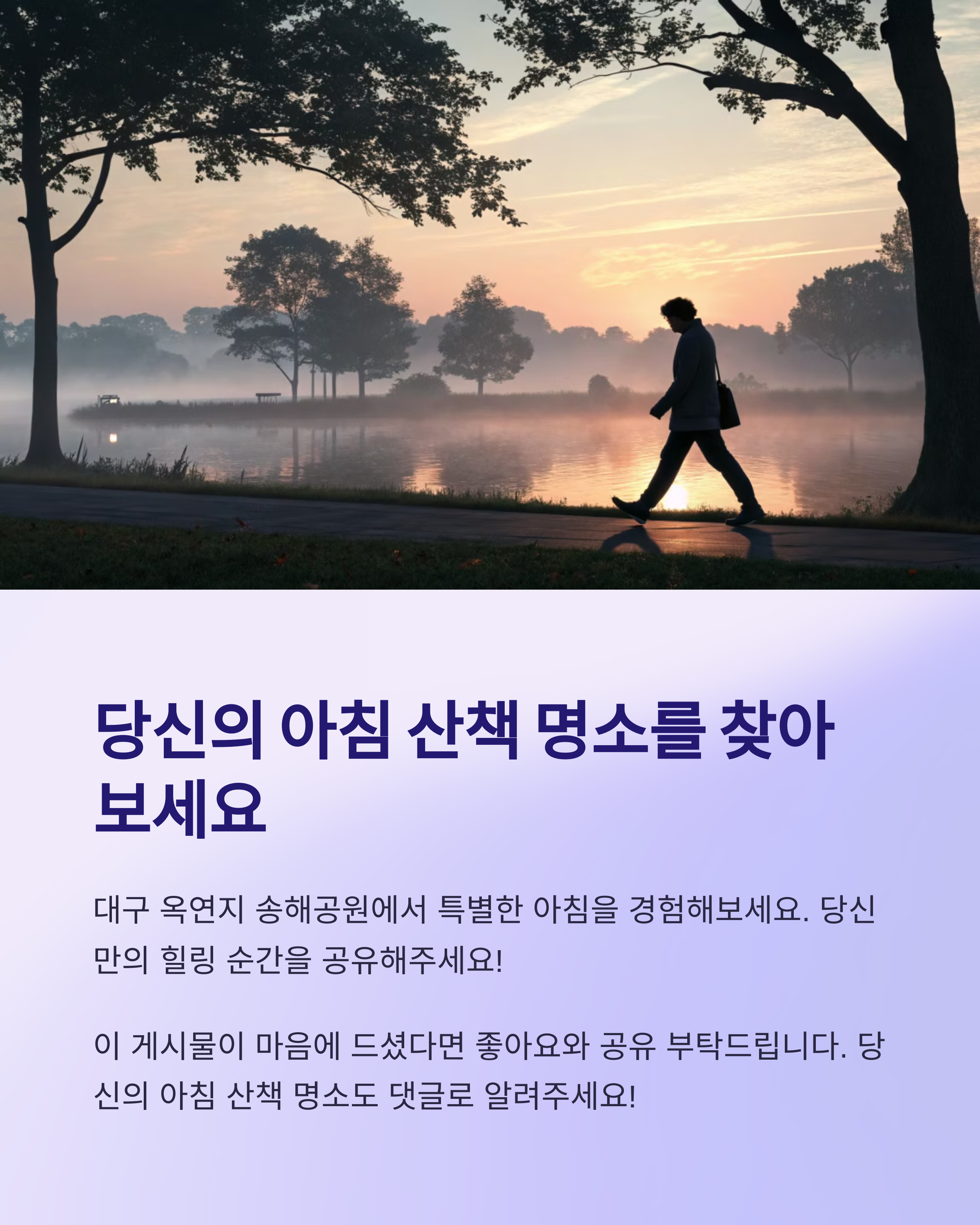 아침 햇살 가득한 산책, 자연 속에서 진짜 힐링을 느끼고 싶다면? 대구의 숨은 보석, 옥연지 송해공원으로 떠나보세요.