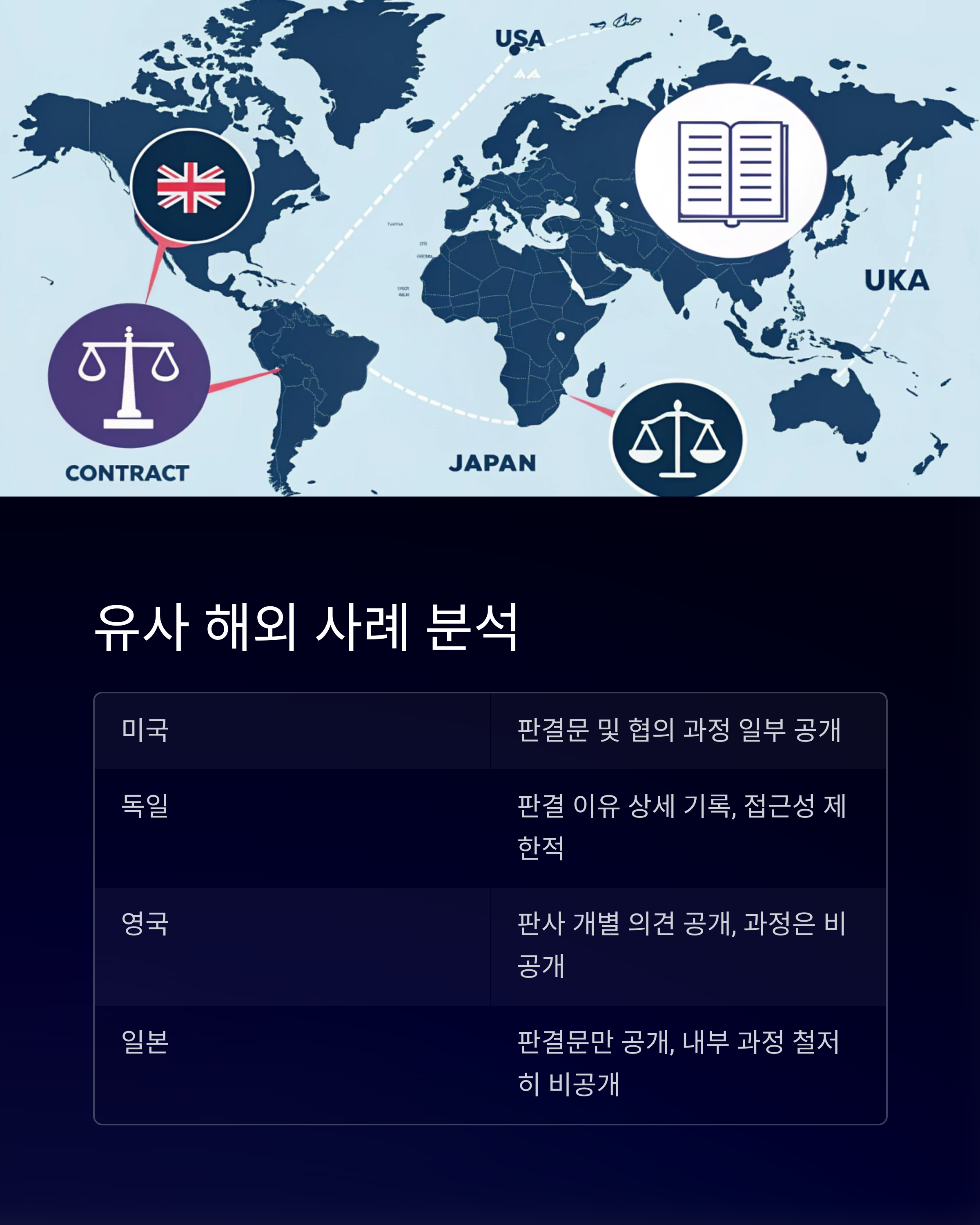현행 정보공개법과 전자문서법 등에 따르면 공공기관의 행정 정보는 원칙적으로 공개가 가능하나, 사법부의 판결 과정은 비공개 대상에 해당할 수 있습니다. 대법원 내부 규정에서도 재판관의 판결 결정 과정은 보호 대상입니다. 하지만 국민의 알 권리와 공공의 이익이라는 명분이 충돌하는 상황에서, 법률적 해석을 둘러싼 논쟁이 거세게 이어지고 있습니다.
