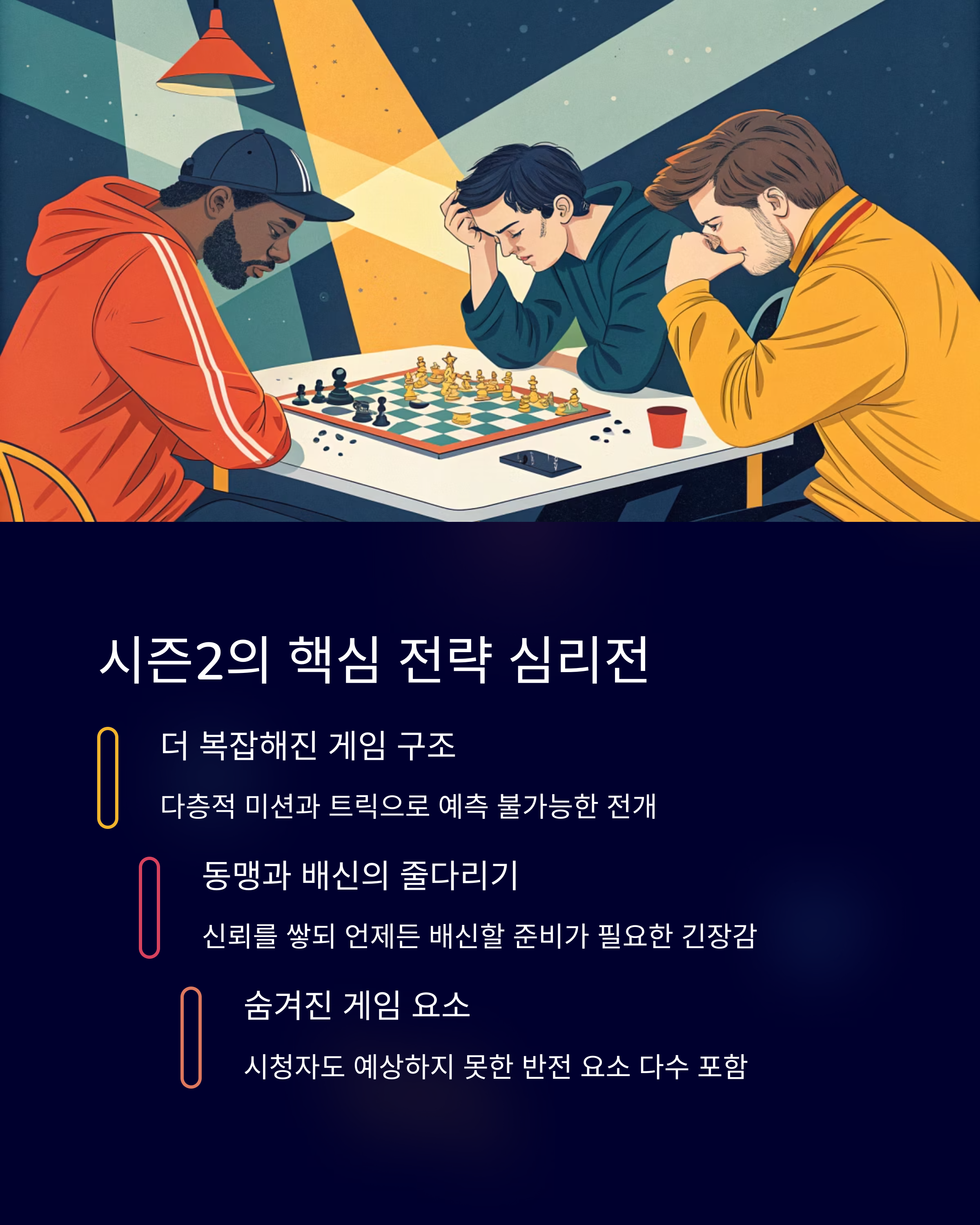 이번 시즌에서 가장 큰 변화는 '감옥동'이라는 구조의 도입입니다. 이는 플레이어 간의 정보 차단과 심리 압박을 강화하는 시스템으로, 게임의 긴장감을 극대화합니다. 전략적 변화 요약은 다음과 같습니다: