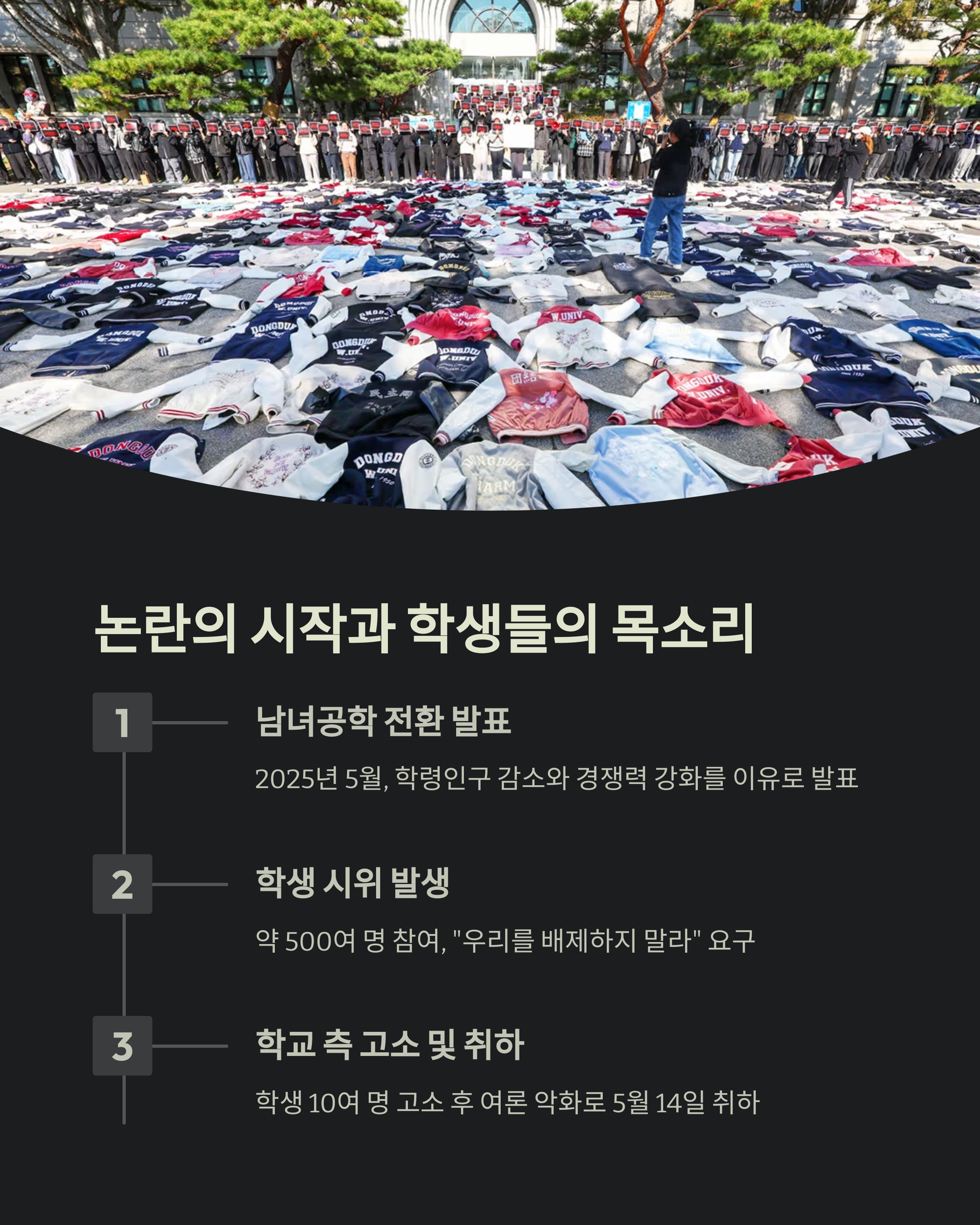 | 주요 요구사항 | 학생 참여 확대, 성별 정책 철회 |
