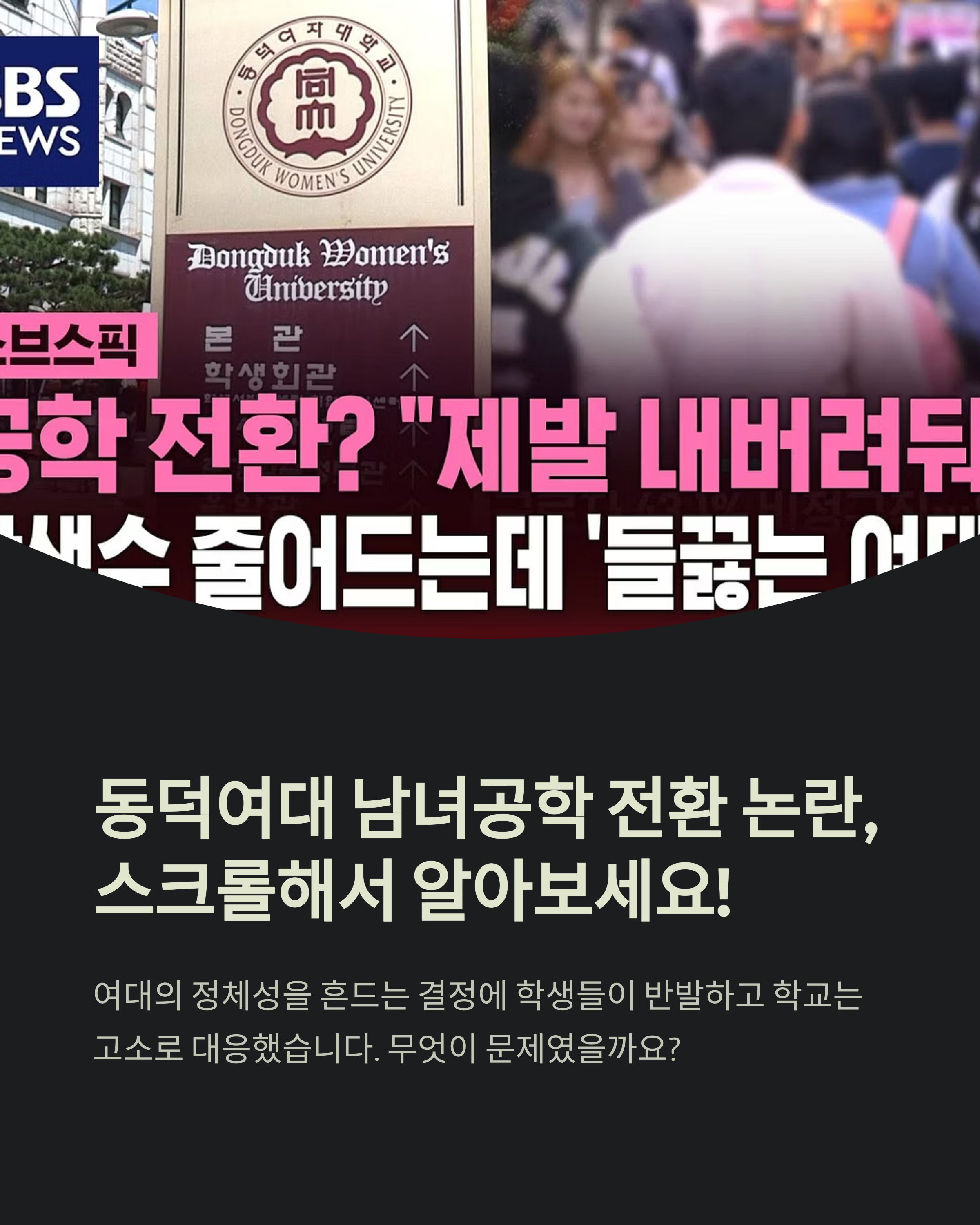“여대의 정체성을 흔드는 결정입니다” 최근 동덕여대에서 벌어진 남녀공학 전환 논란과 학생 고소 사태는 많은 이들에게 충격을 안겼습니다.
