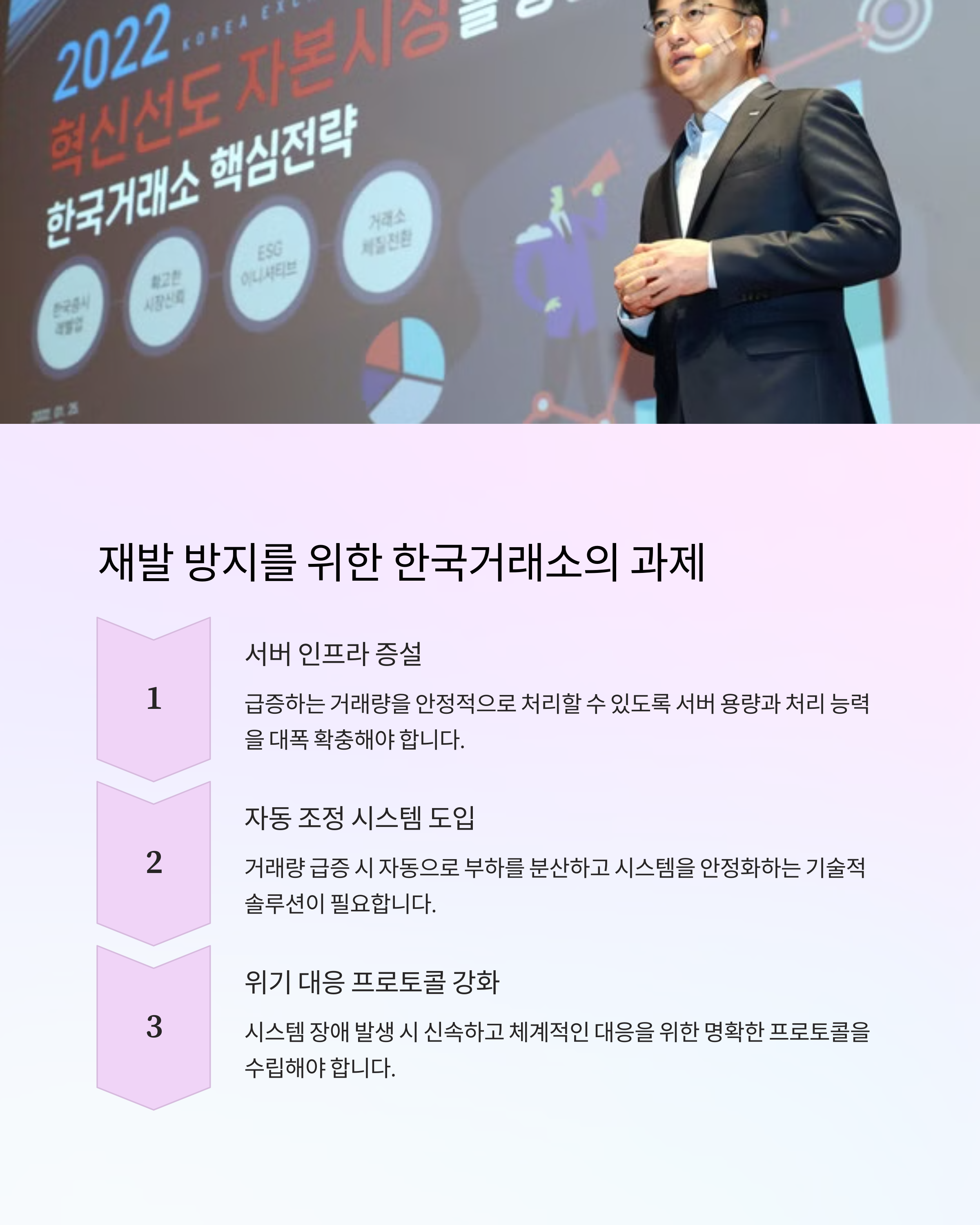 이번 사건을 계기로 한국거래소는 보다 철저한 리스크 관리 체계를 갖춰야 합니다. 거래소의 안정성 확보는 투자자 보호뿐만 아니라 시장 전체의 건전성을 유지하는 데 필수적이기 때문입니다.