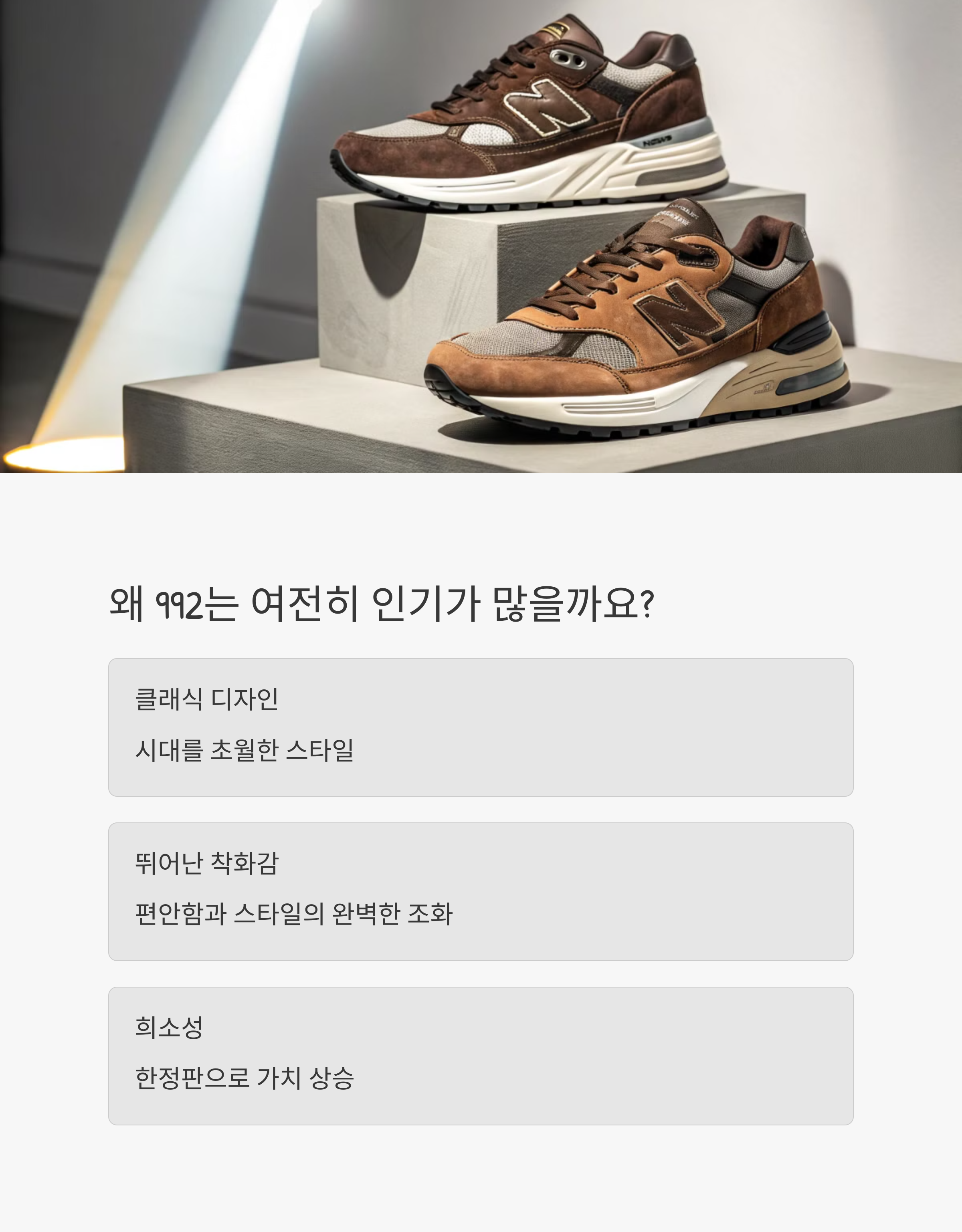 궁금하지 않으세요? 왜 이렇게 뉴발란스 992는 매번 난리일까요? 이유는 딱 세 가지로 정리됩니다.