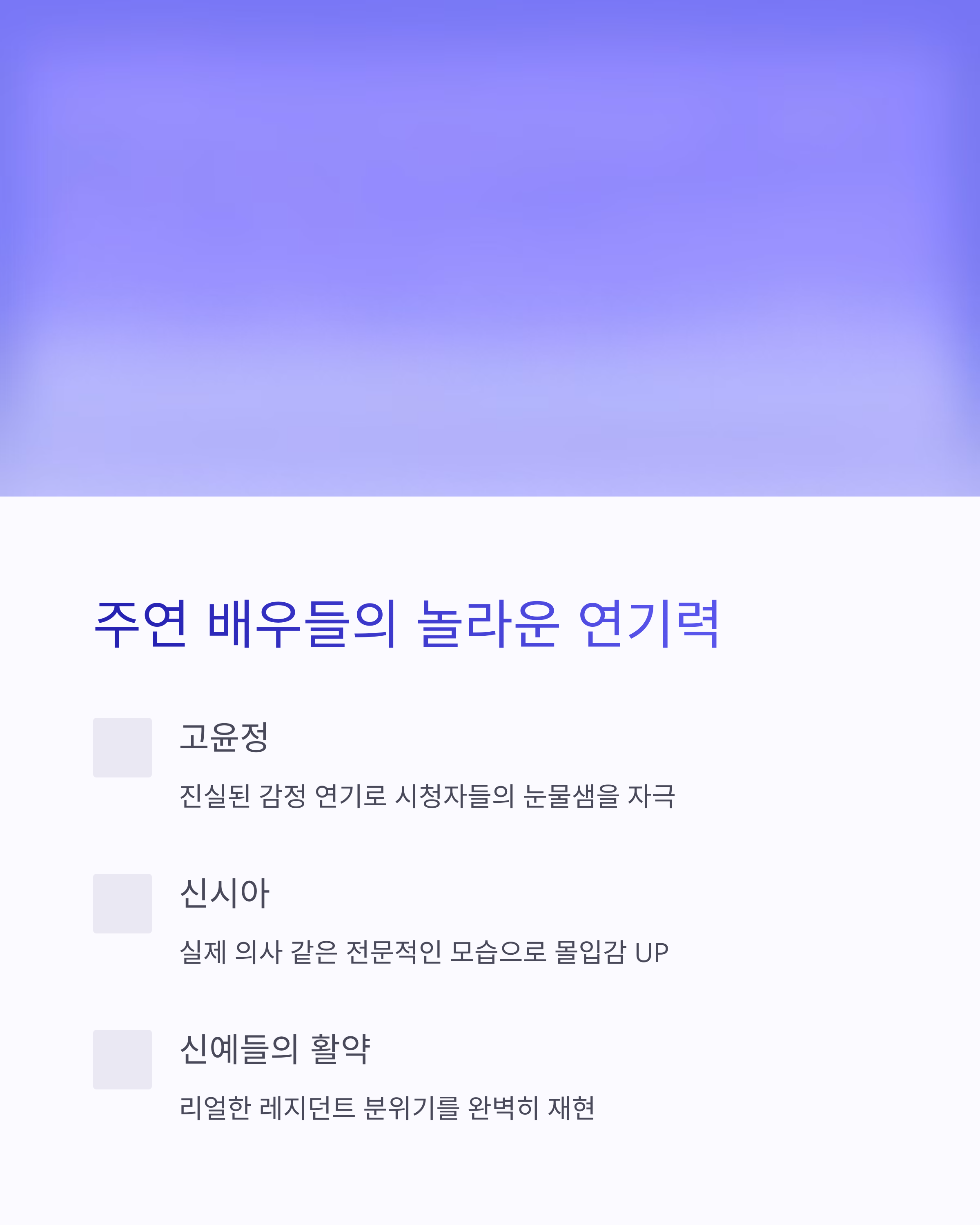 현직 의료진들도 공감할 만큼 디테일이 살아있습니다. 인턴-레지던트의 일상, 긴장감, 피로함 등이 생생하게 표현되어 있어요.