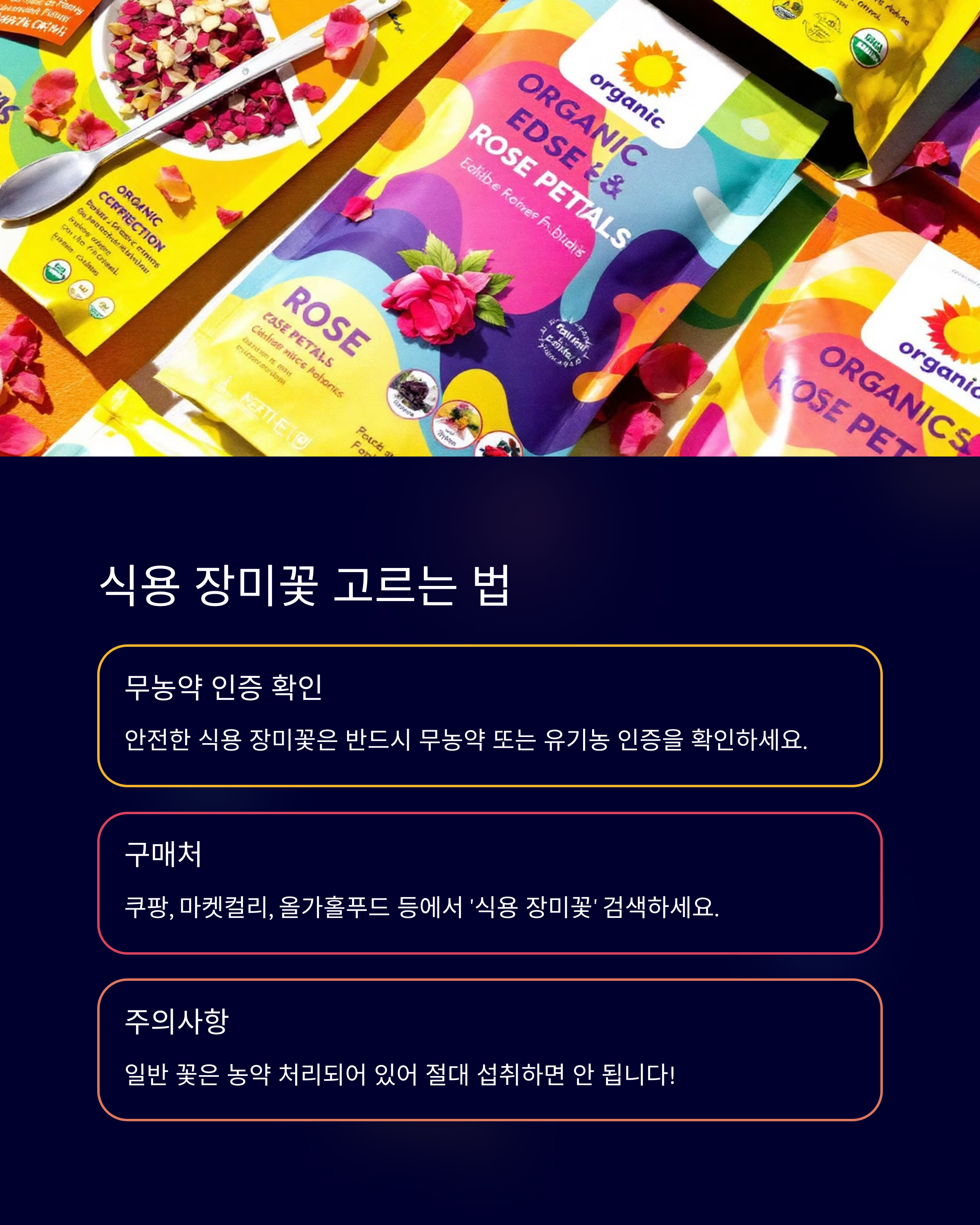 '장미꽃이 먹는 거라고?' 싶으시죠? 하지만 실제로 식용으로 인증된 장미꽃은 식품 원료로 판매되고 있고, 안전하게 먹을 수 있어요. 특히 무농약 인증이 중요해요. 아래 표처럼 확인 가능한 식용 장미꽃 정보를 체크해보세요!