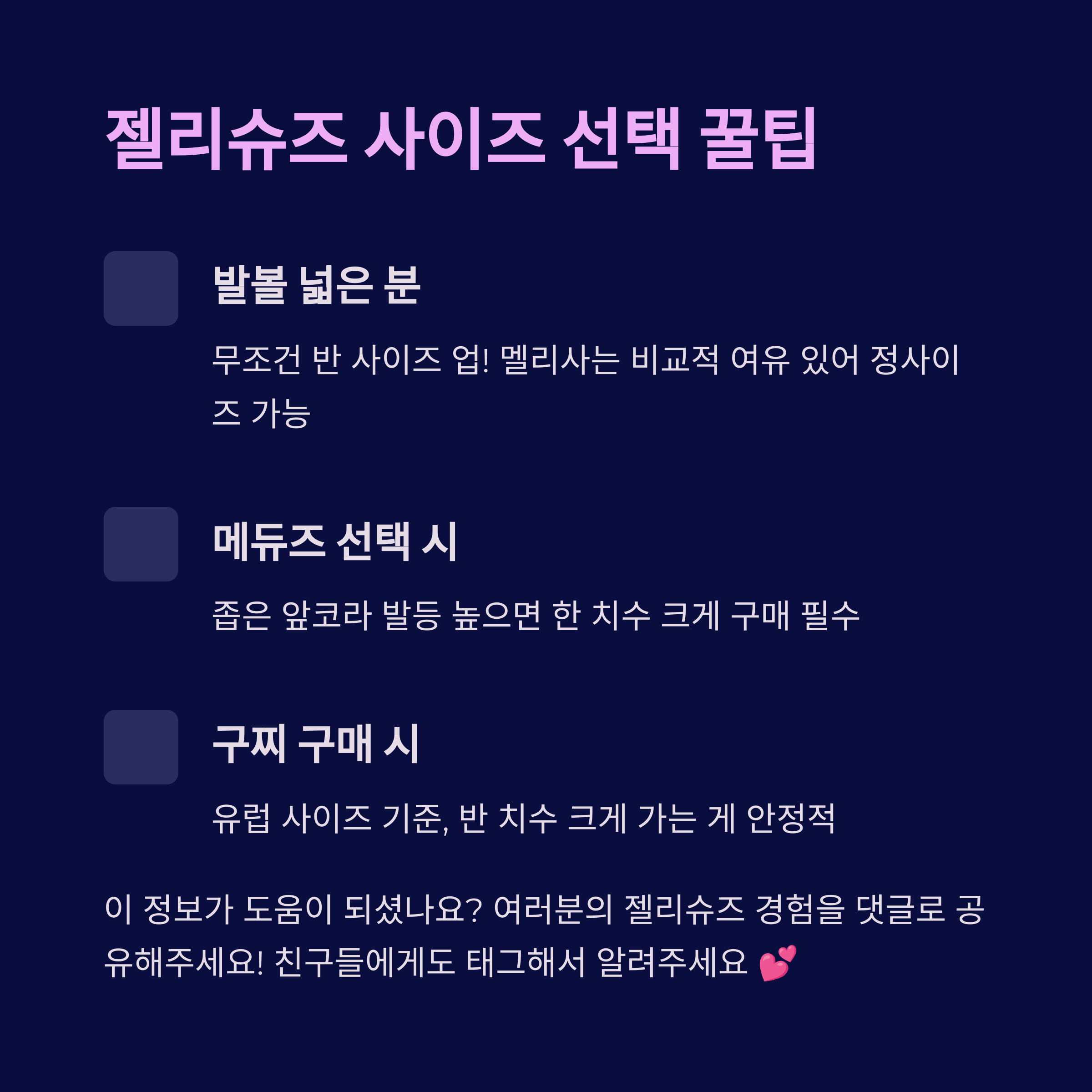 여기까지 읽어주셔서 정말 감사드려요! 여름엔 가벼운 신발 하나만 잘 골라도 하루가 편안하잖아요. 저처럼 젤리슈즈 선택 고민하셨던 분들에게 이 글이 조금이라도 도움이 되었길 바라요. 브랜드마다 착화감이나 스타일이 확실히 다르니까, 나에게 맞는 신발을 잘 골라보시길 바랍니다. 다음엔 젤리슈즈 코디법이나 세척법 팁도 정리해볼게요. 기대해주세요 :)