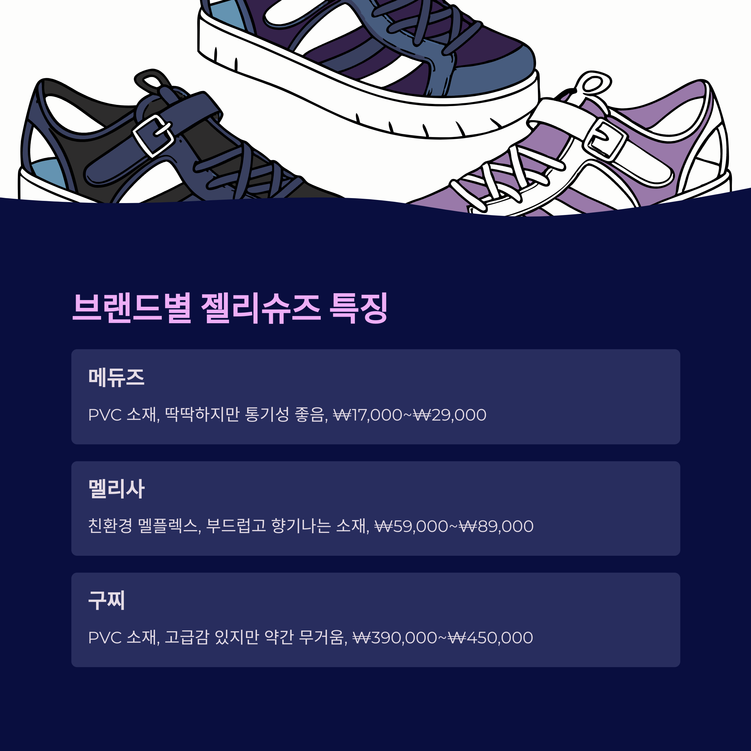 브랜드별 젤리슈즈 비교 (메듀즈·멜리사·구찌)