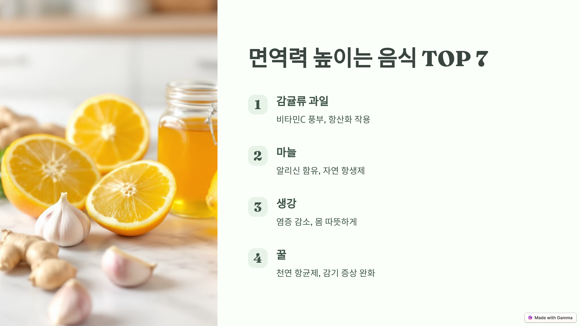 면역력 높이는 음식 TOP 7, 감기 예방 효과! 🍊🍯