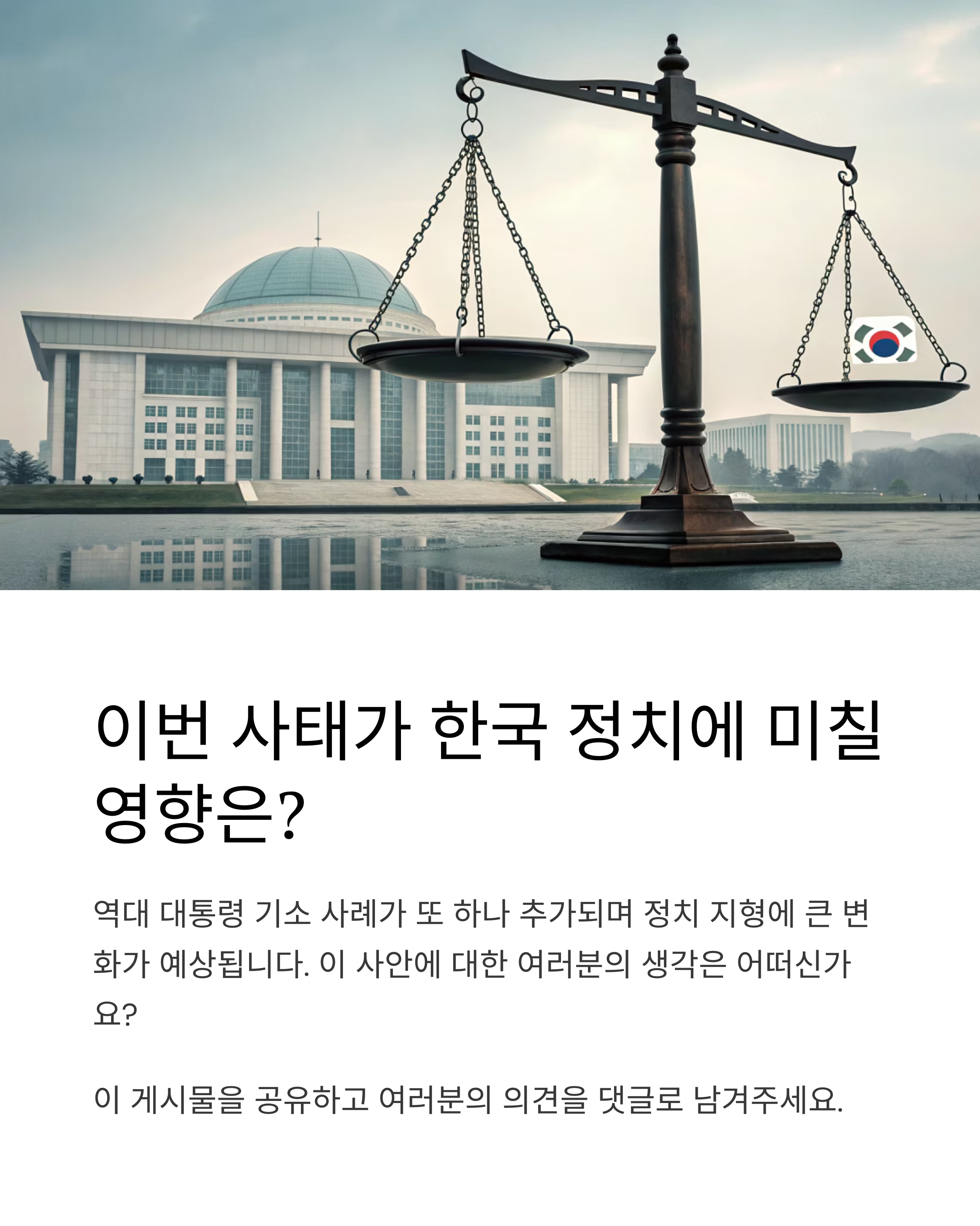 다음 포스트에서는 "전직 대통령 기소가 가져올 정치권의 구조 변화"를 주제로, 계파 재편과 여론 지형 분석을 준비하고 있습니다. 놓치지 마세요!