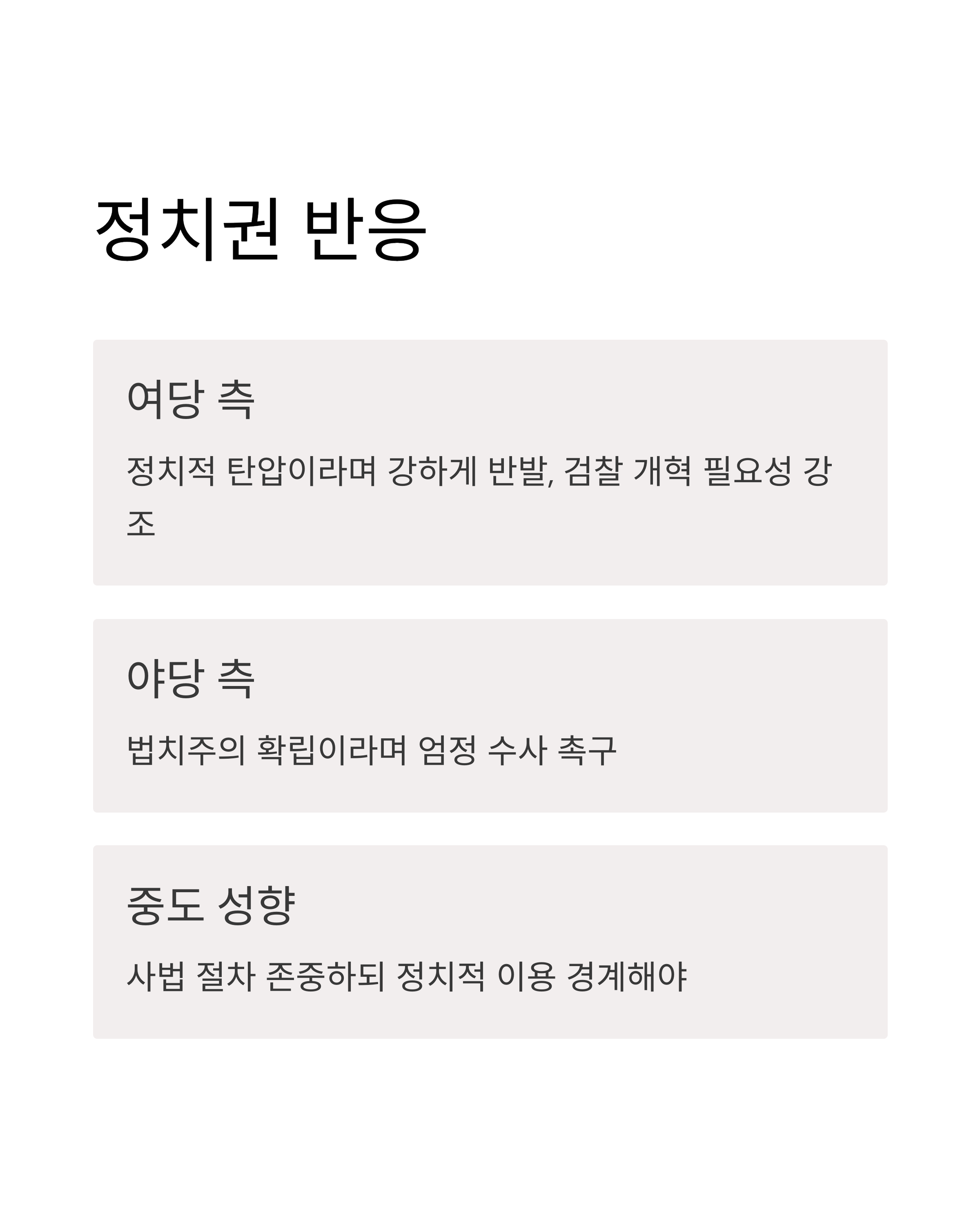 정치적 후폭풍도 만만치 않습니다. 한 여론조사에 따르면, 응답자의 58%가 ‘기소 정당함’을 인정했고, 31%는 ‘정치적 의도’를 우려했습니다. 특히 중도층에서의 이탈 현상이 감지되며, 내년 총선 구도에도 적잖은 영향을 줄 것으로 보입니다. 주요 전망은 다음과 같습니다: