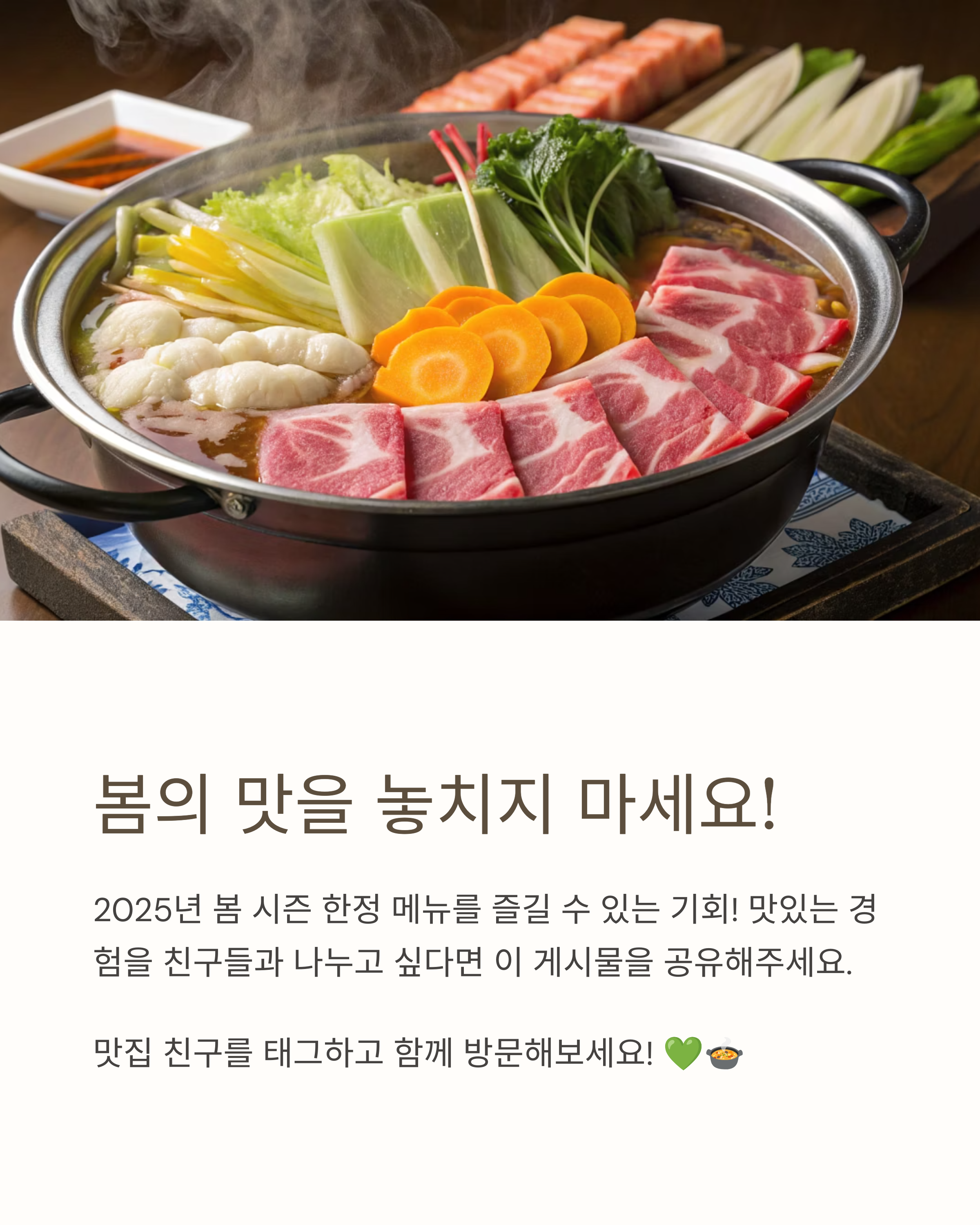 2025년 봄 시즌 한정 메뉴는 5월 중순까지 운영되며, 재료 소진 시 조기 종료될 수 있어요.