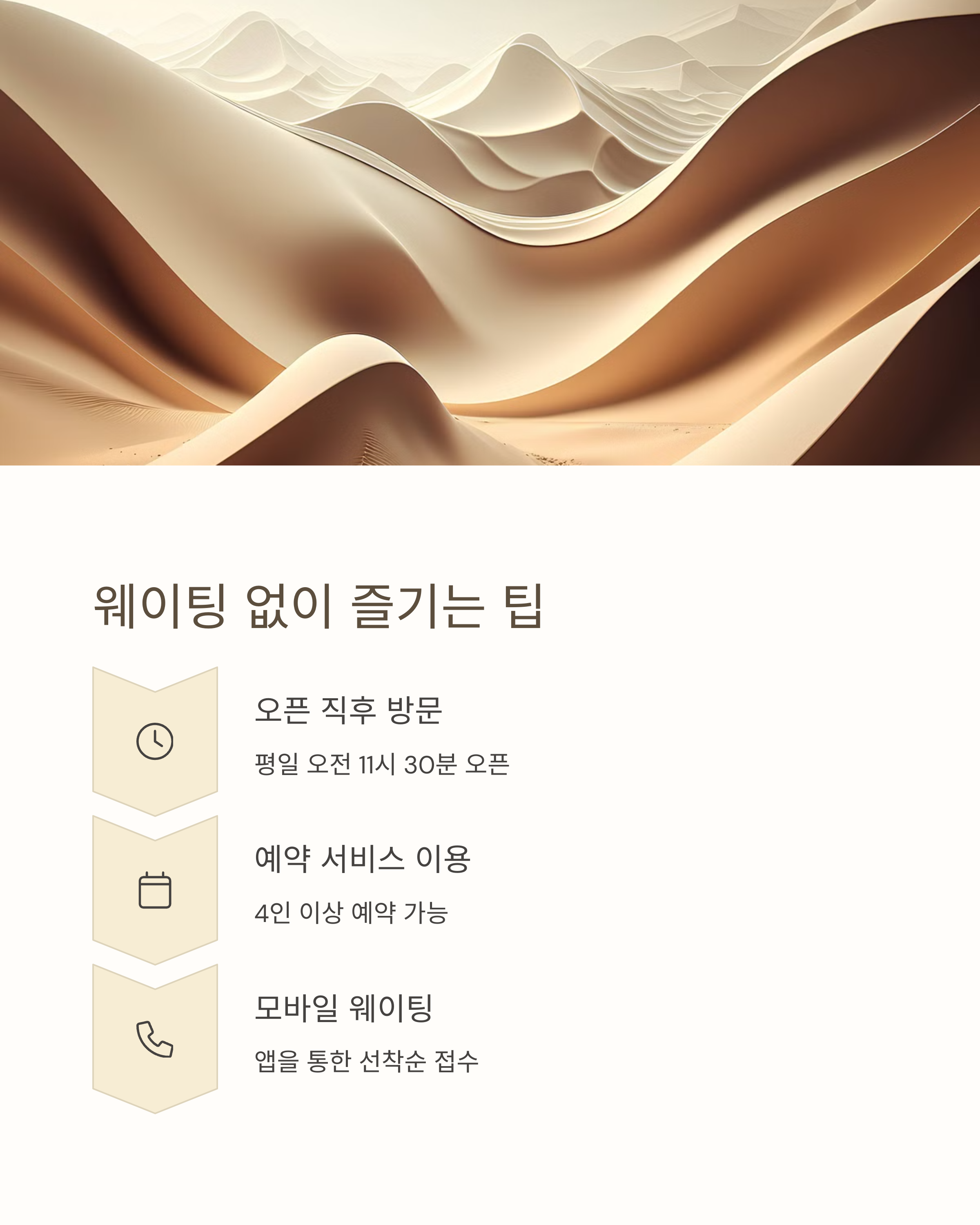 웨이팅 팁: 네이버 예약 시스템 활용하면 현장 대기 없이 바로 입장 가능! 특히 주말/공휴일엔 필수예요. 방문 전 재료 소진 여부 확인 전화도 한 번 해보세요.