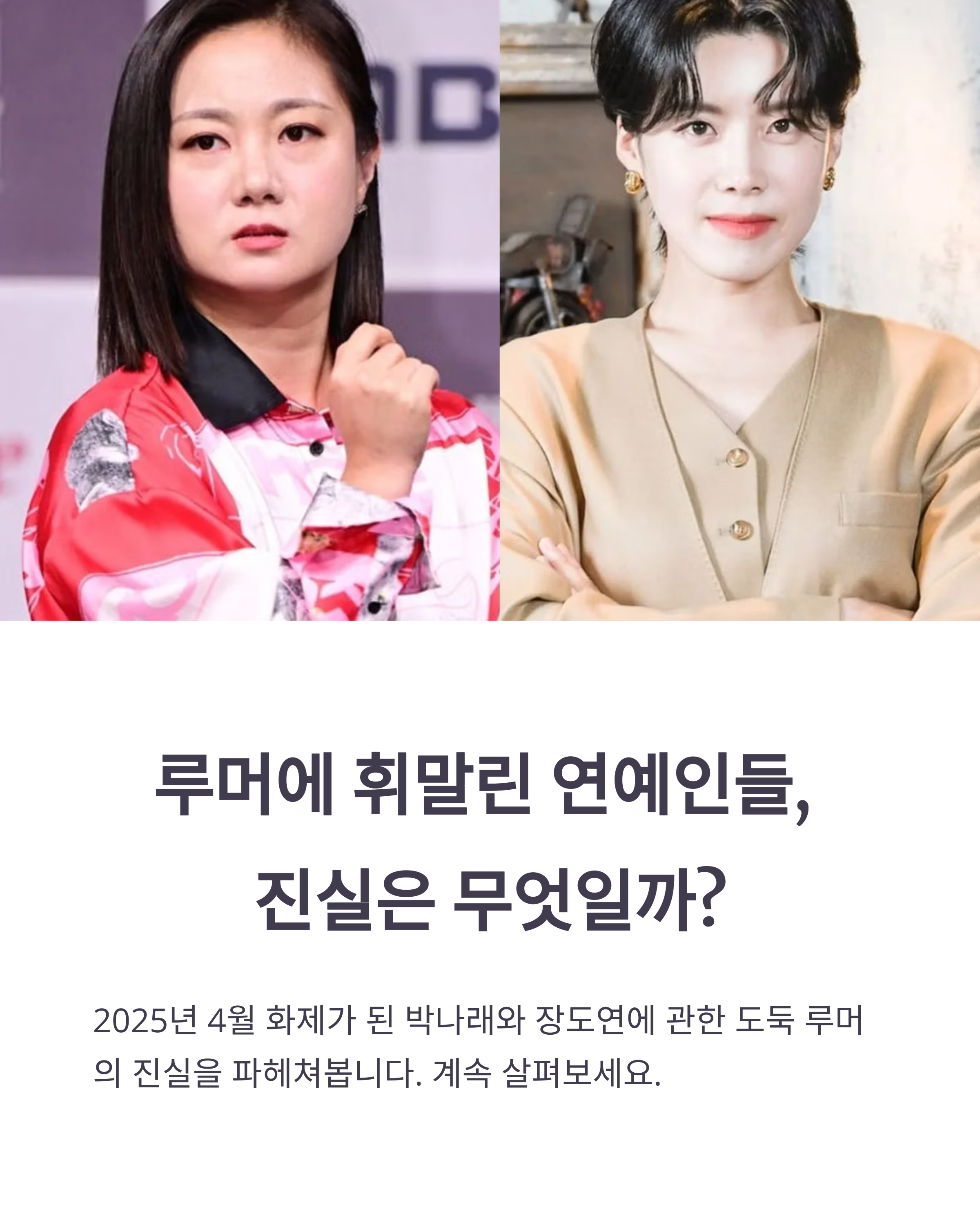 2025년 4월, 연예계가 다시 한 번 온라인 루머로 뜨겁습니다. 박나래와 장도연을 둘러싼 '도둑' 이슈, 진짜일까요?