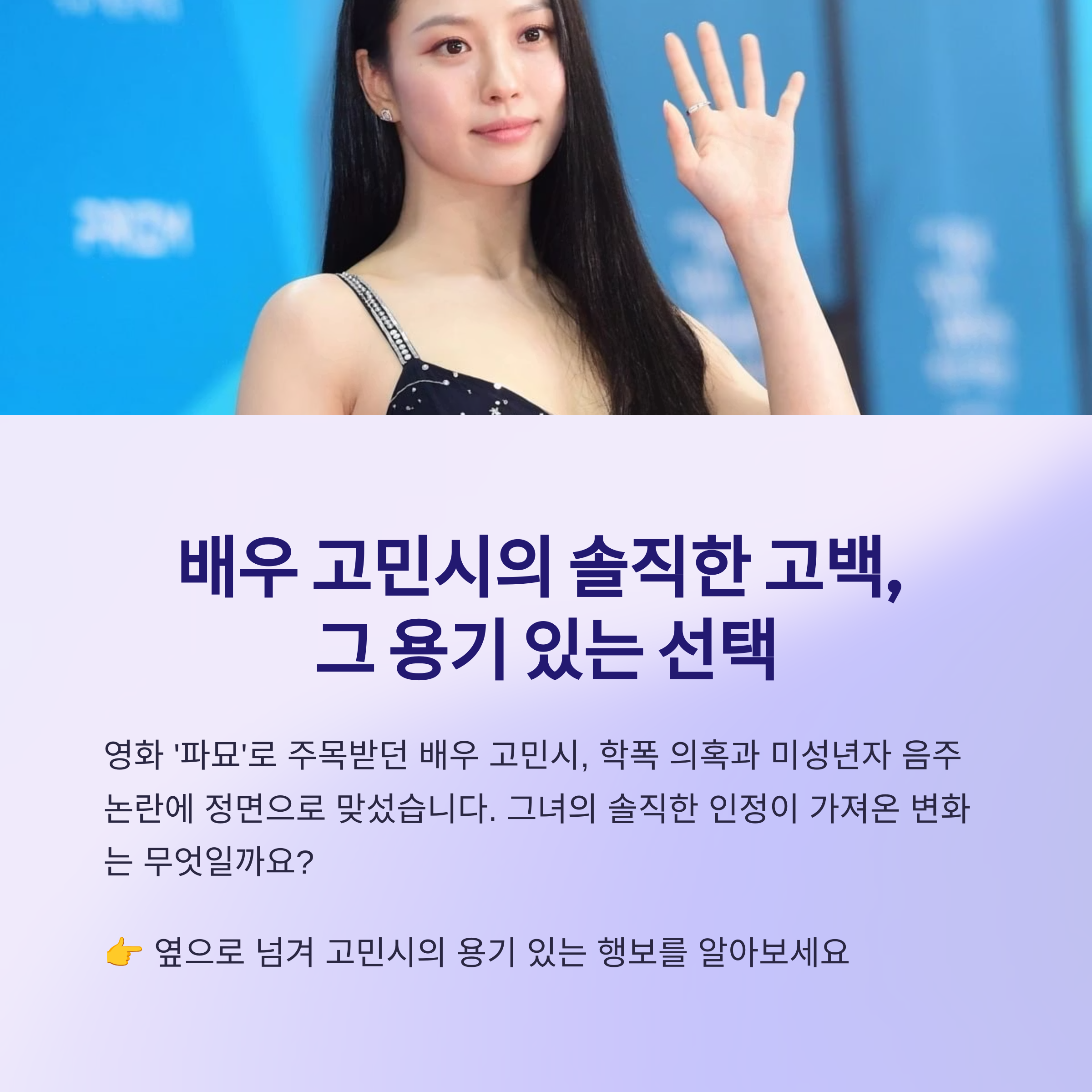고민시 씨의 이번 논란과 대처 방식은 많은 것을 생각하게 합니다. 과거의 잘못을 어떻게 대하고, 대중과 어떻게 소통해야 하는지에 대한 좋은 선례이자 동시에 계속해서 숙고해야 할 질문을 던져주었죠. 부디 이번 일을 통해 더욱 단단하고 성숙한 배우로 성장하길 응원합니다. 이 글을 읽으신 여러분은 어떻게 생각하시나요? 더 궁금한 점이 있다면 댓글로 물어봐주세요~ 😊